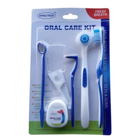 ORAMUNT Oral Care Kit Set of 6 Items for Extra Clean Teeth and GumsA complete Oral care kitTooth brush Dental Tooth Pick Interdental Brush Dental Stain Eraser Tongue Cleaner Dental Floss Dental Mirror6 different oral tools