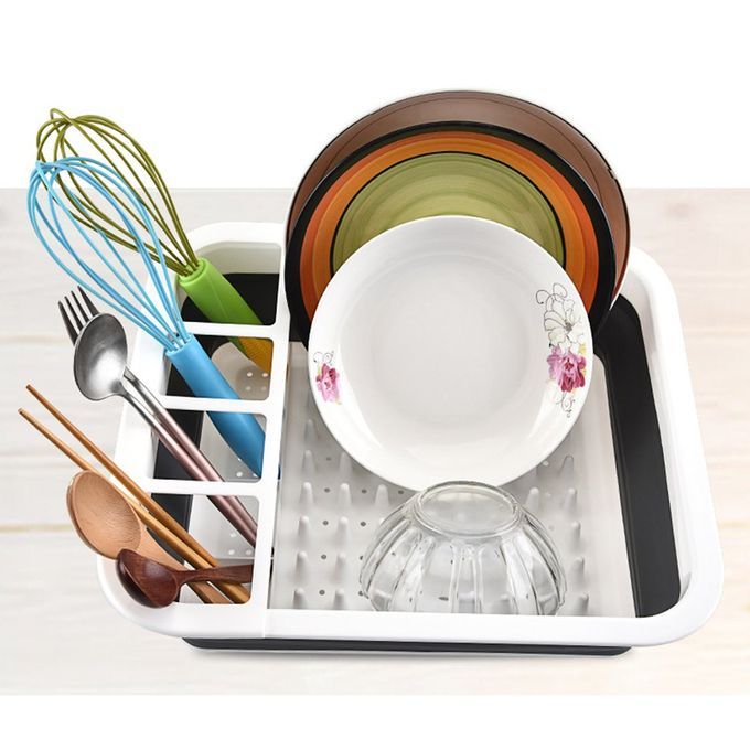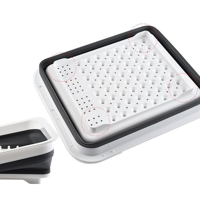 Features: 1. Easy folding, folding and storage when not in use, saving home spa e. 2. Fun tion differentiation is reasonable and onvenient, various kit hen utensils an be instal on the side, and lutter is not allowed. 3. The bottom is equi ed with a ir ular water filtering hole, whi h an qui kly filter the water stains on the tableware.