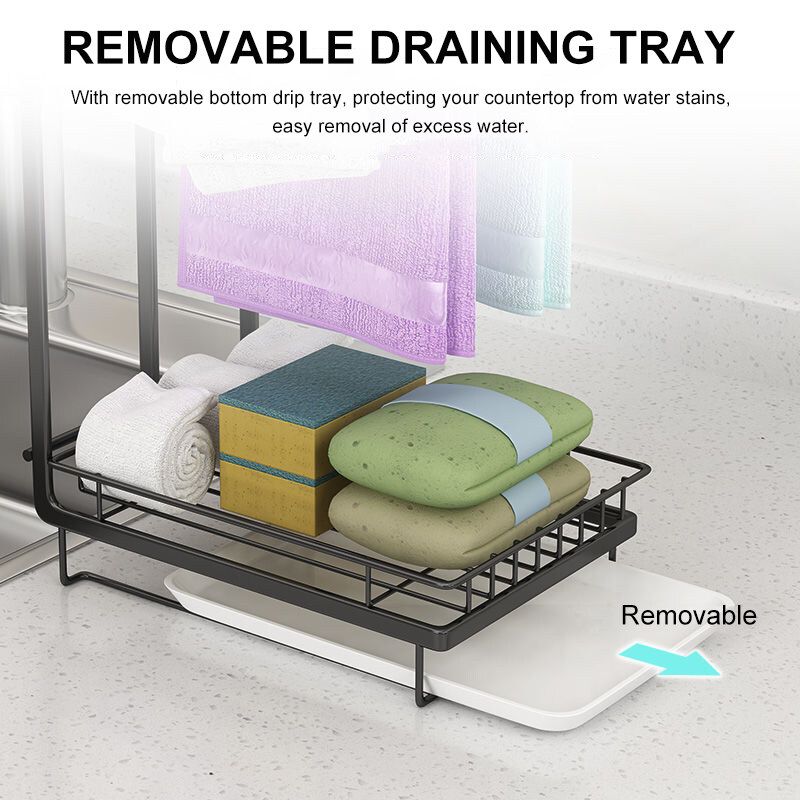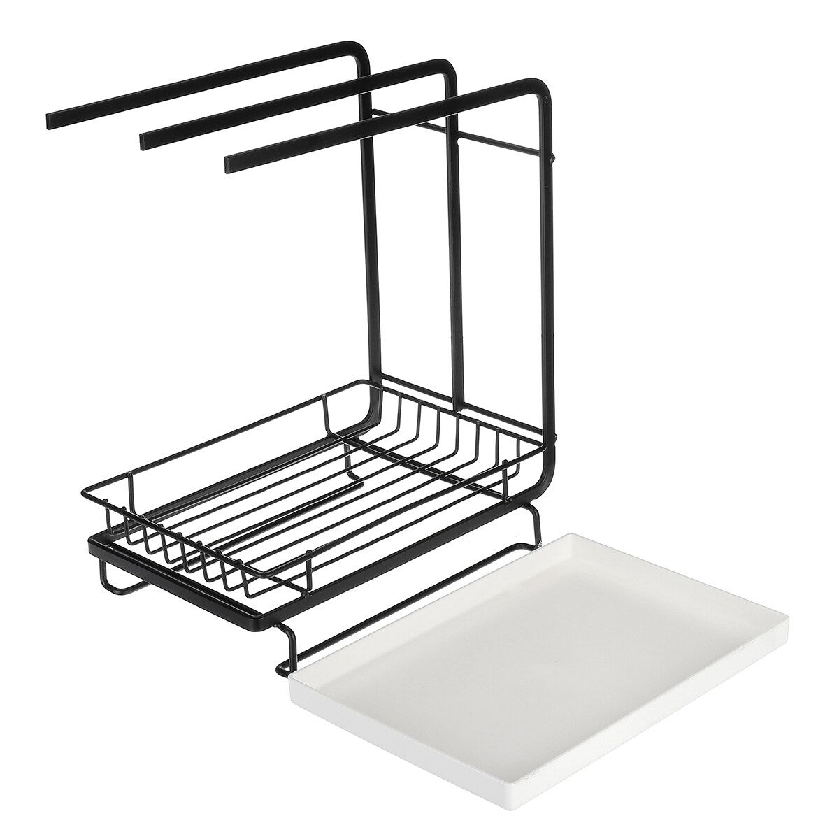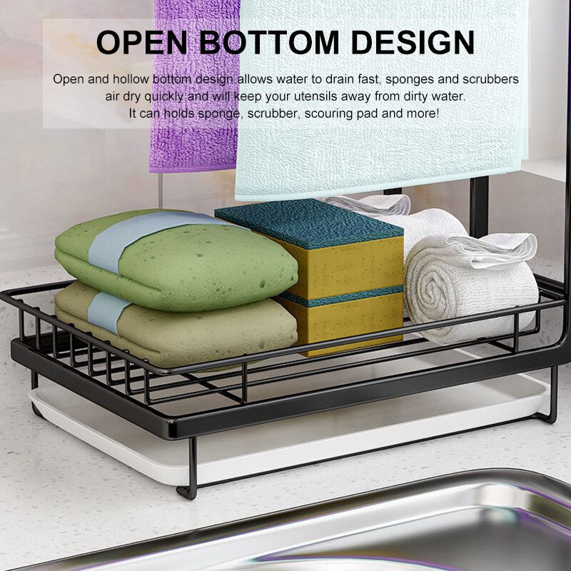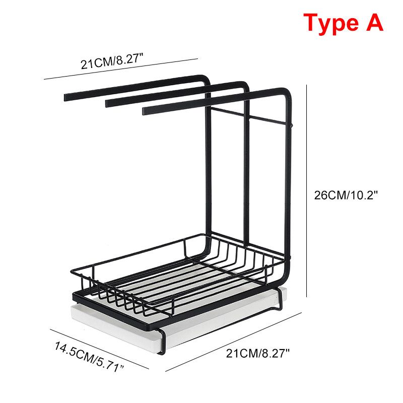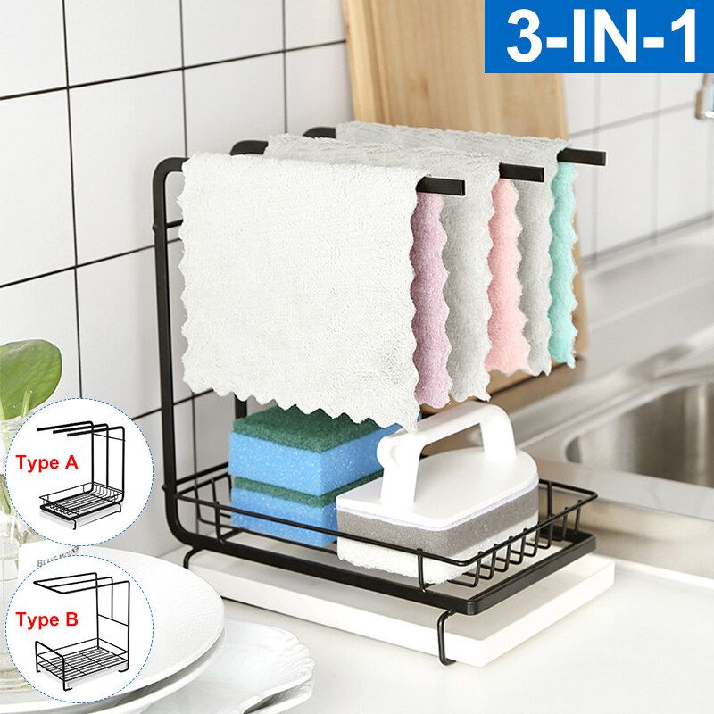 Kitchen 3-IN-1 Sponge Rag Holder Rack Drain Tray Stainless Steel Organizer Hold Rag Rack Types A/B Black