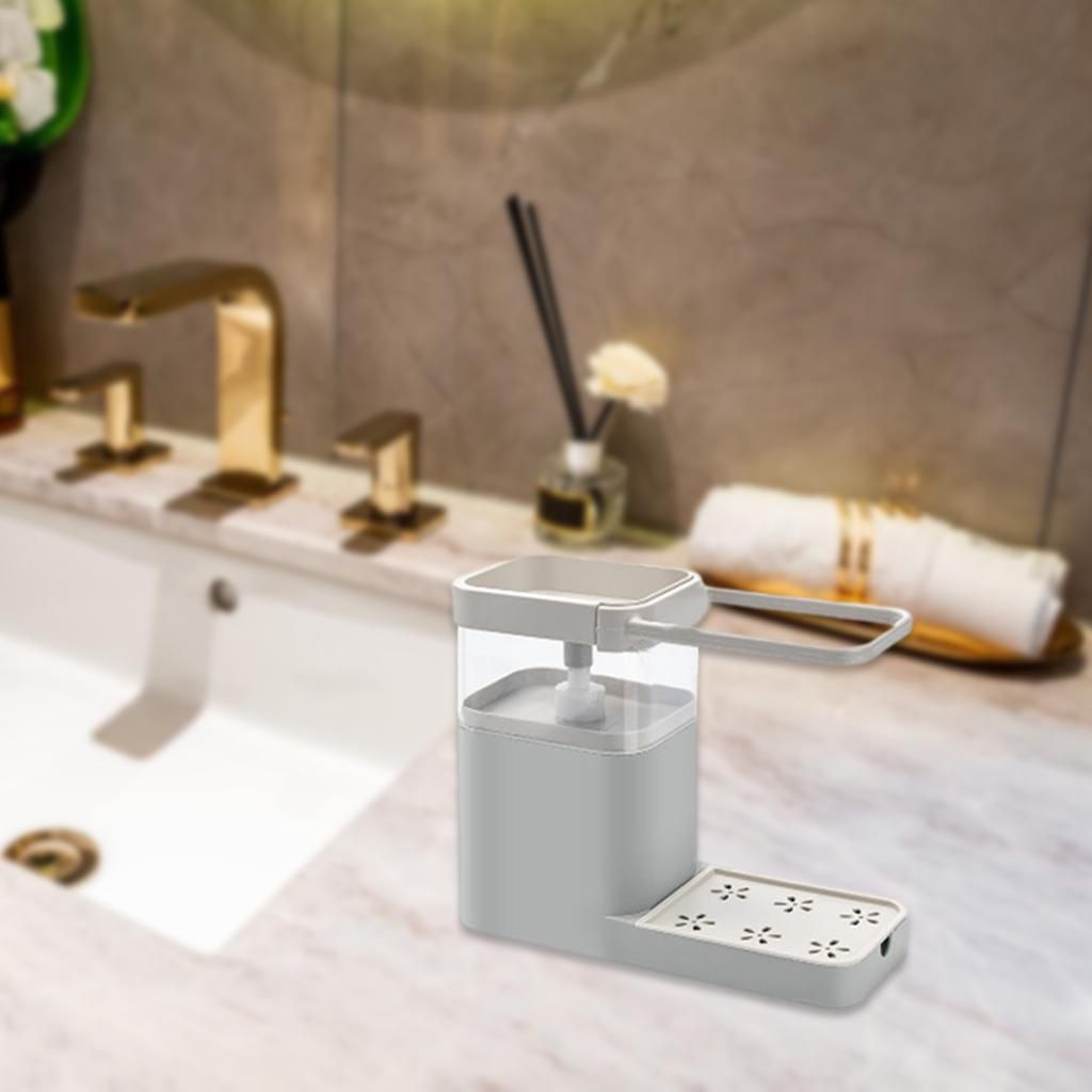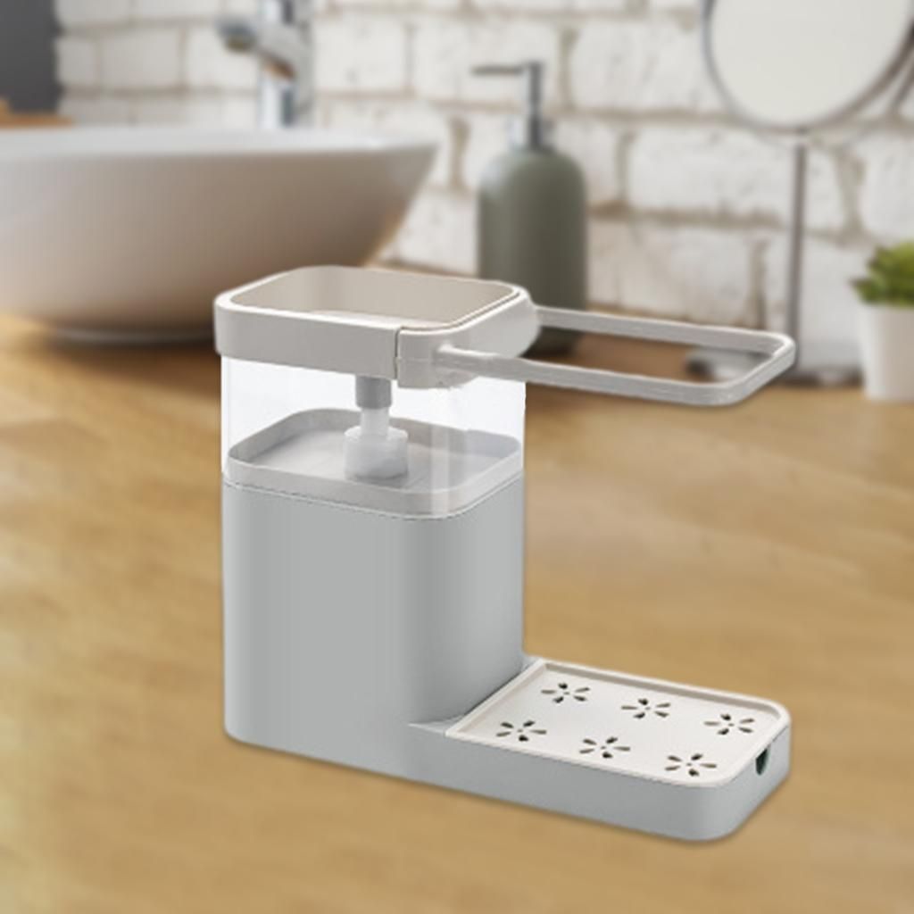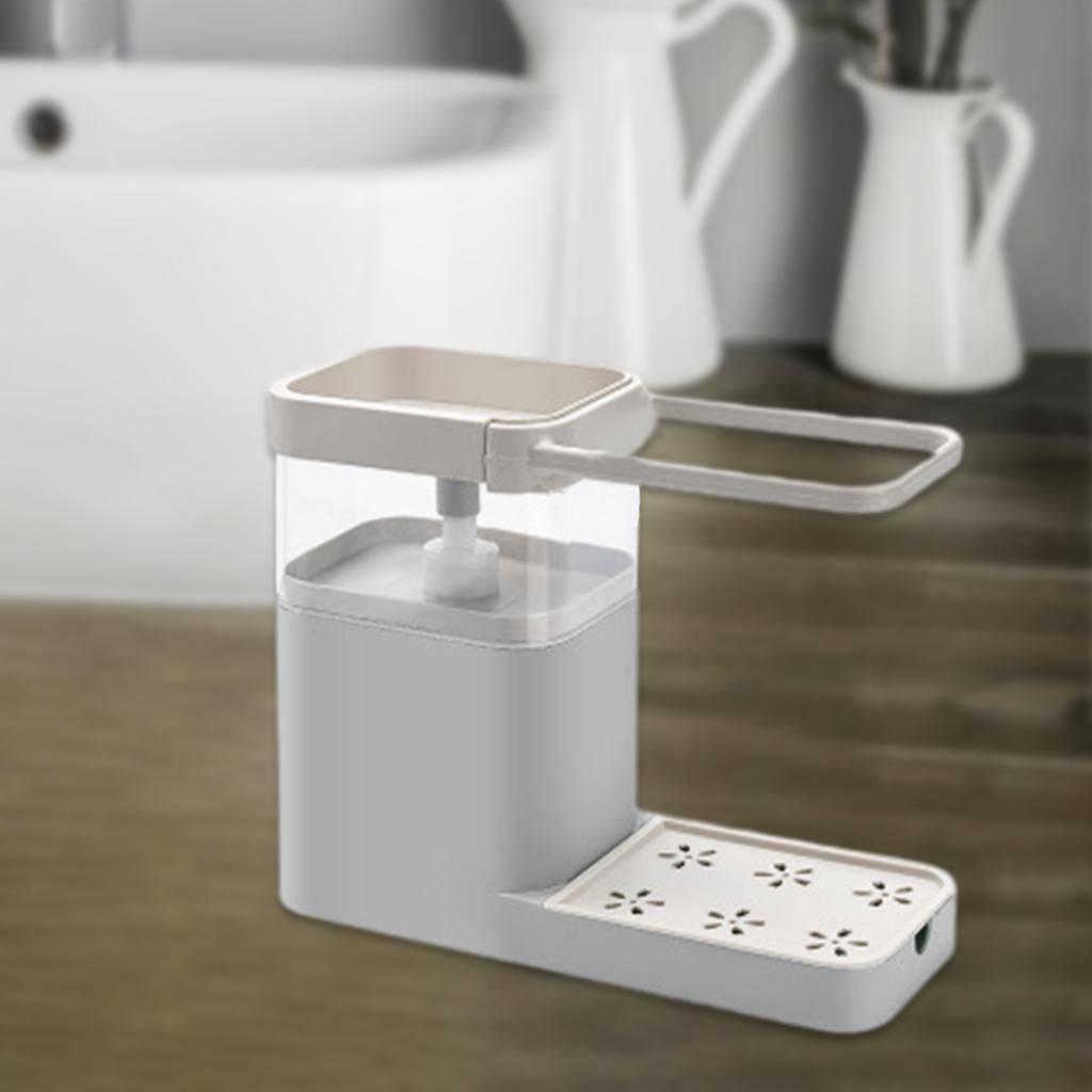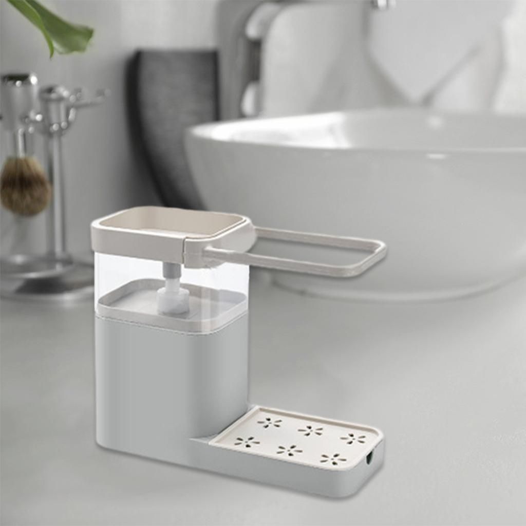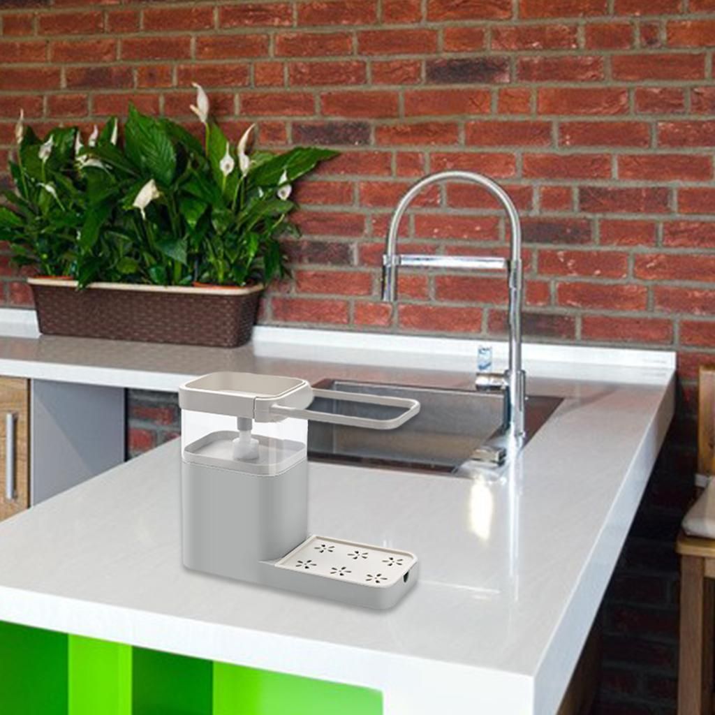 LARGE CAPACITY - Dispense the perfect amount of onto the sponge, extremely easy to use. Container has a large capacity of 50 ounces so that you dont need to refill it frequently. Easy to Use.HIGH-QUALITY MATERIALS - dispenser sponge holder made of unbreakable, corrosion-resistant and safe BPA-free food grade transparent ABS+PP plastic making it long lasting.With innovative design.RATIONAL USE of SPACE - Keep the cleaning utensils neat and orderly and placed neatly.Easy to disassemble and easy to clean.INSTANT 4-IN-1 DISPENSER + CADDY+TOWEL RACK+DRAINAGE PORT - Sink dispenser with attached caddy holds sponges, scrubbers, rags, scouring pads in one convenient place while keeping water off of kitchen counters. The towel rack is designed to dry towels quickly.Drainage port, quick drainage.VERSATILE USE - Suitable for sponge, steel wire ball, pot brush, etc.Best for home, school, office, hotel, restaurant, factories, airport, gas station, and so on. for commercial and public places.Great Gift for your Friends or Family.