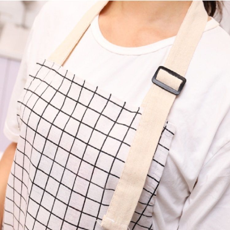 Kitchen Antifouling Simple Cotton Linen Checkered Apron