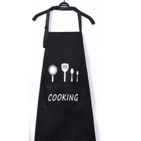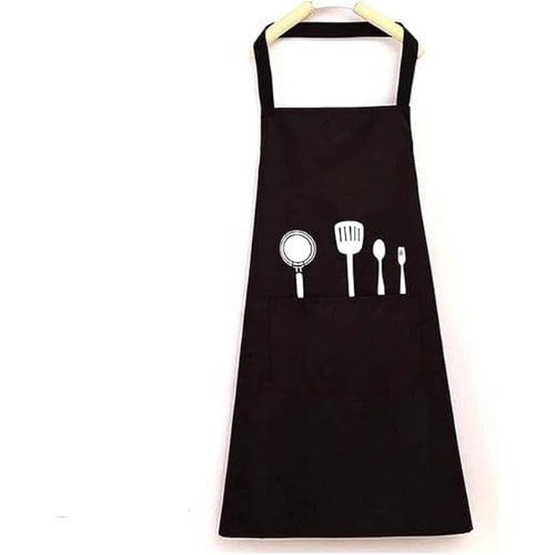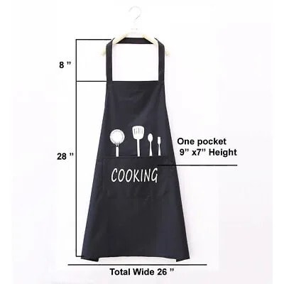 with adjustable neck straps and a wide pocket that allows storage for mobile phones or many kitchen tools like a spoon, seasoning packets, meat thermometer, grill slips and recipe cards, etc. the surface has a waterproofing coating to prevent oil splashes