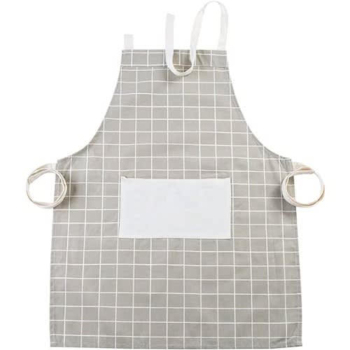 The apron provides great coverage and protection from kitchen grease, spills and food stains. This apron can be easily altered to fit most sizes.