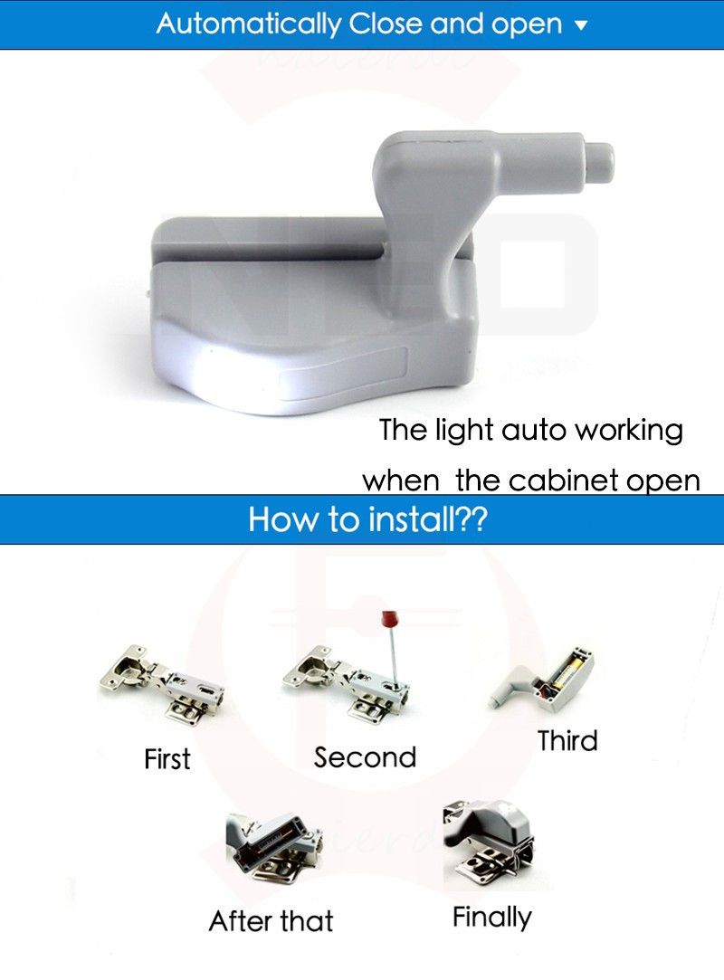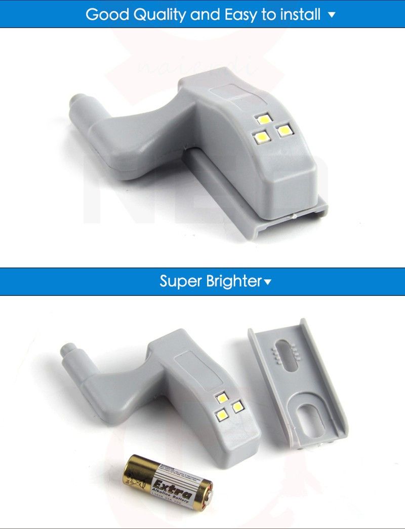 Specifications: Material: ABS Color Temperature : AS the picture Size: 49mm (1.93 inch) x 15mm (0.59 inch) Power supply: Battery,23A 12V ( No battery included ) Package include: 1 x Hinge light Note: Please kindly notice that the hinge are not included 。No battery included