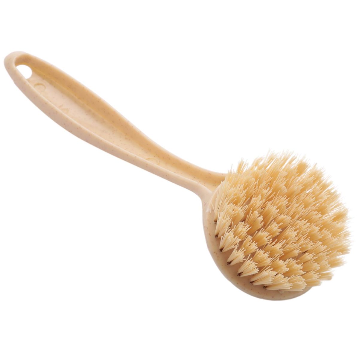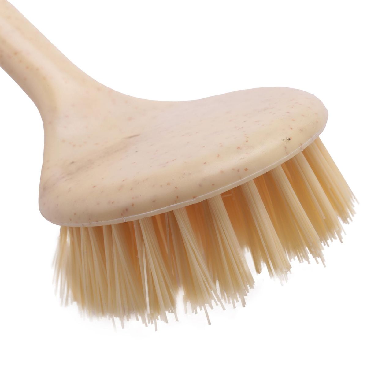 Long handle scrub brush great for washing dishes, plates, drink-ware, glasses, cups, pots, pans, or even tennis shoes.