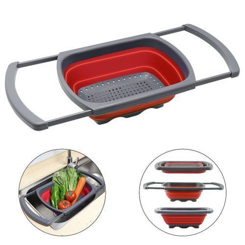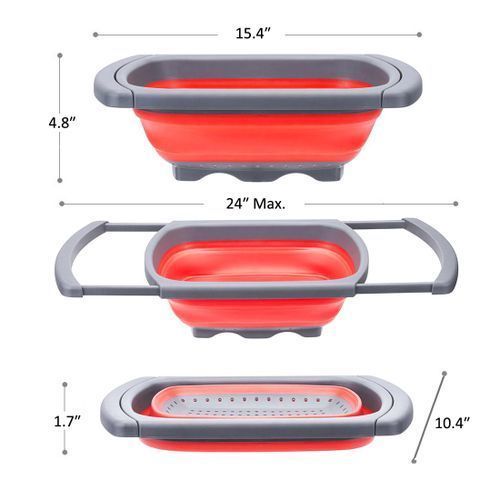 Over the Sink Collapsible Colander - Space Saving Design Easy to collapses and folds,when folded,these colanders are only 2"tall.
