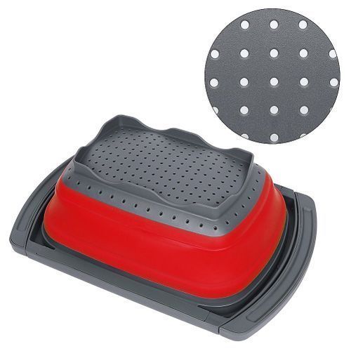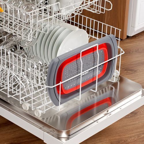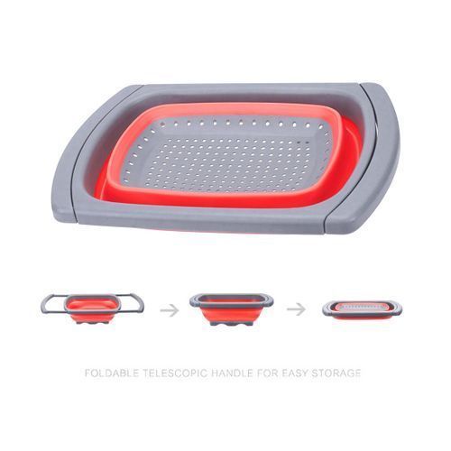 FOLDABLE and EXTENDABLE: Ergonomic, Space-Saving Design. The Silicone Collapsible Colander is collapsible and with extendable handles so it can take up no more space than a plate would. It is the perfect solution to small kitchens and crowded cupboards.