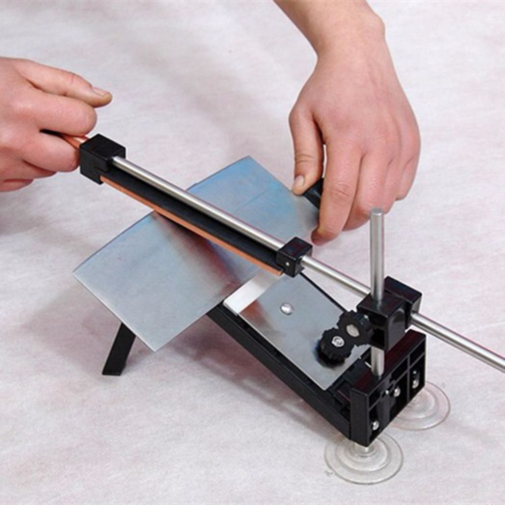 Professional cutter sharpener, for different sizes of cutters. Quick and easy way to sharpen cutter blade. Safety design to protect your hands. More stable sucker disc base. Color ruler to show the accurate cutter angle.