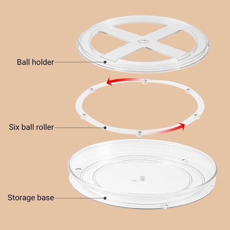 - The highly transparent shell design of the rotating tray organizer. Make it easy to find what you're looking for.