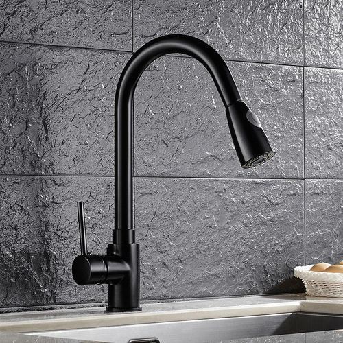 Kitchen Pull Out Cool Black Painted Finish Flexible Hot and Cold Mixer Taps Deck Mount Swivel Faucet
