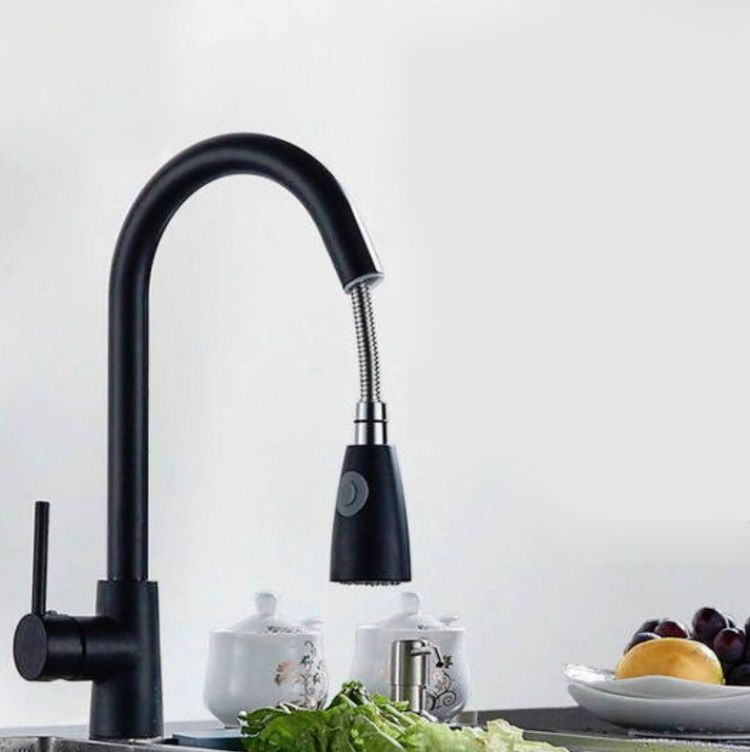 Kitchen Pull-out Faucet, Style:Stainless Steel Black