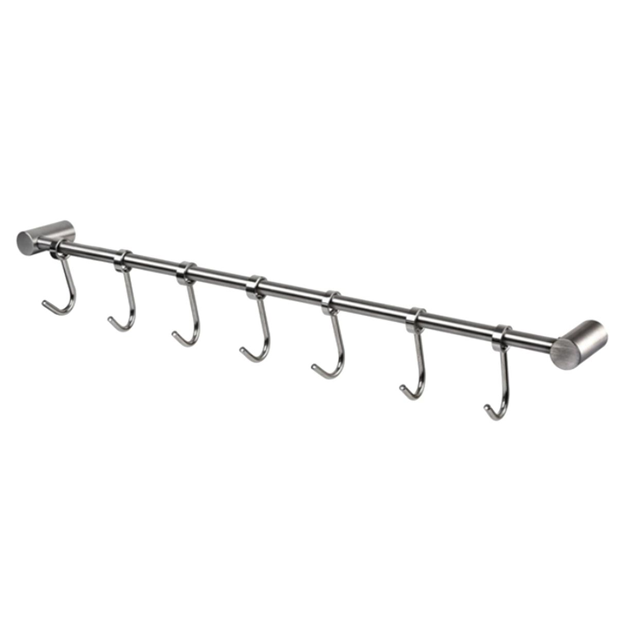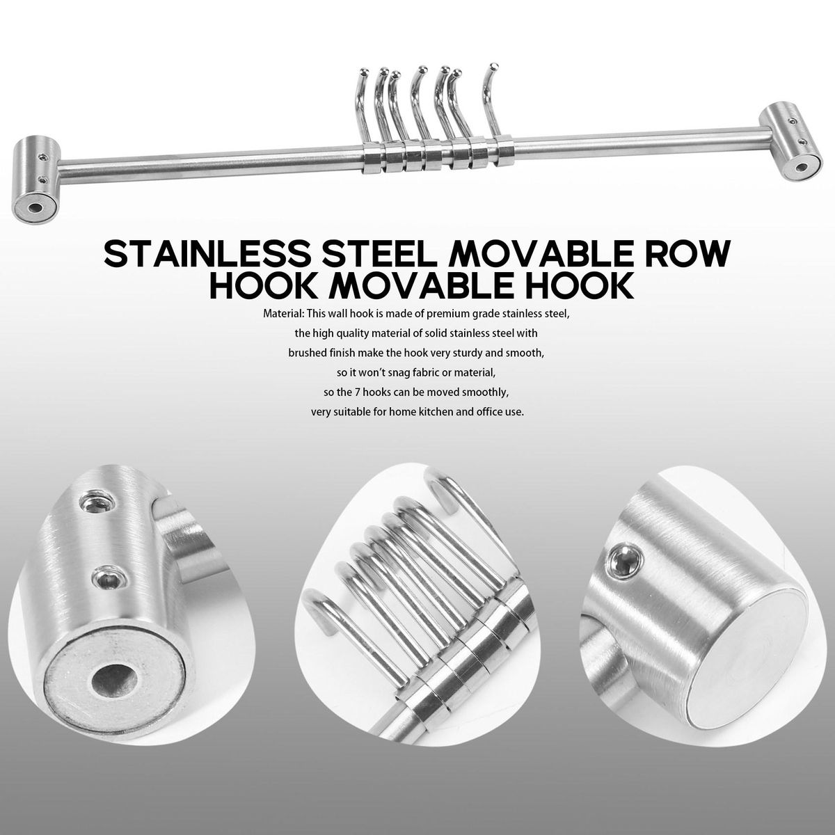 Material: This wall hook is made of premium grade stainless steel, the high quality material of solid stainless steel with brushed finish make the hook very sturdy and smooth, so it won't snag fabric or material, so the 7 hooks can be moved smoothly, very suitable for home kitchen and office use.