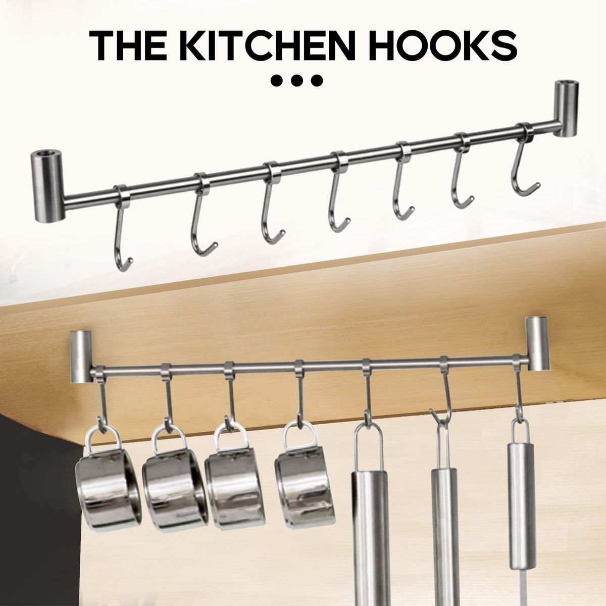 This Stainless Steel Utensil Hanging Rack is finished in a sleek look and offers a convenient way to hang cups, cooking utensil set, towels, gloves or anything you want to hang up behind the door, in the entryway, or any other space in your kitchen or bathroom, this hook rack is really comes in handy.