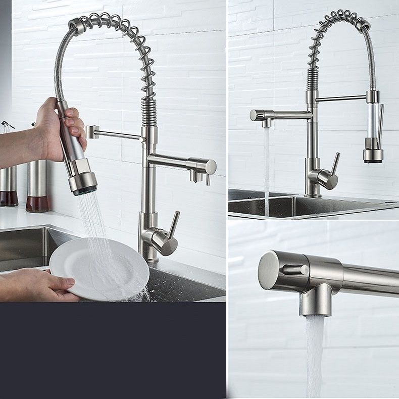 Kitchen Rotatable Spring Faucet , Specification: Brushed