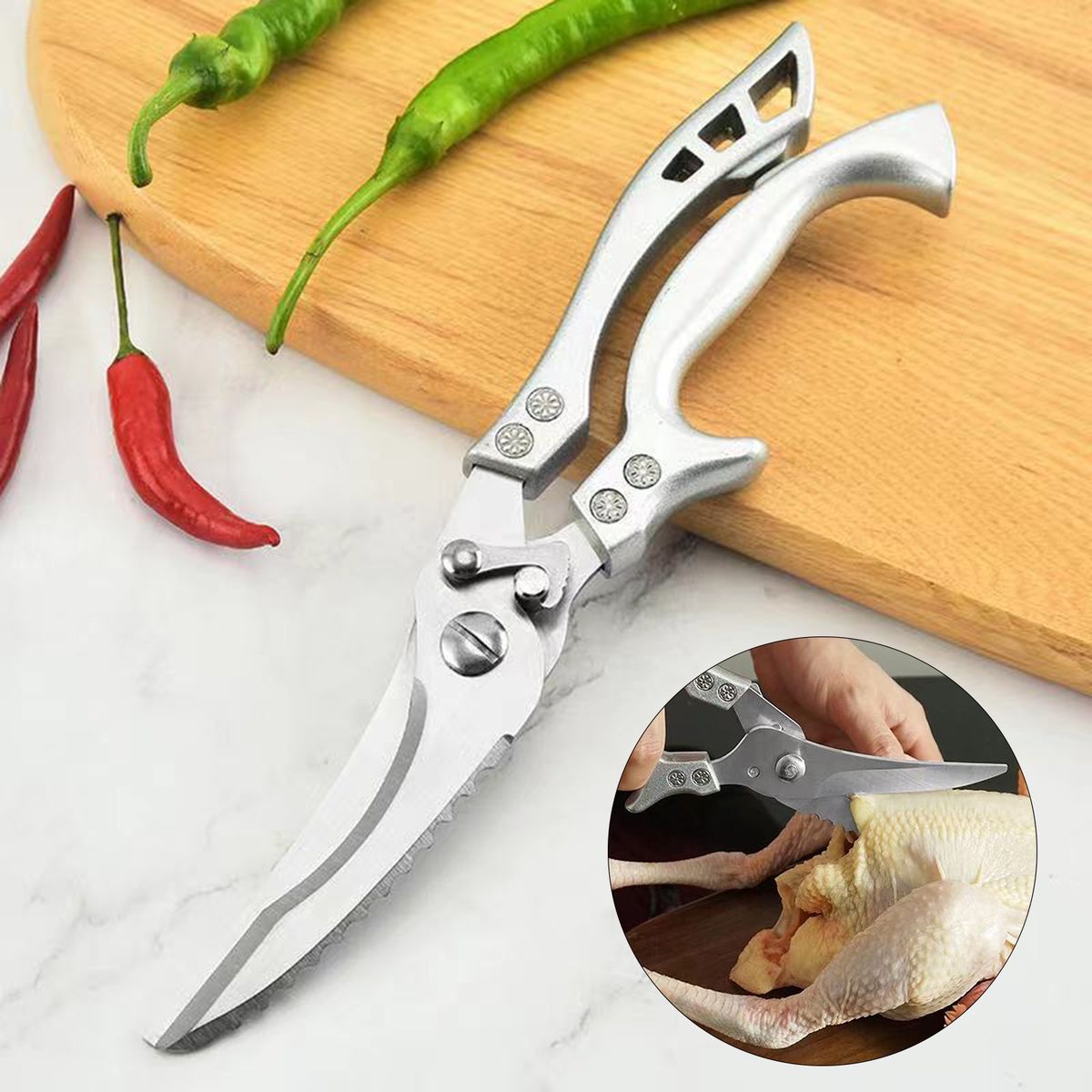 Featuring a spring loaded handle, the kitchen shears allows you to spend less effort when cutting meat, fish, turkey, chicken, bone, vegetable, seafood, etc.
