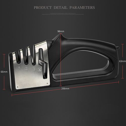 FeatureSuitable for straight knives and scissors;Designed with incredible 4-slot system;Non-slip base makes the sharpener steady;Ergonomic handle ensures comfortable and stable grip;Easy to use