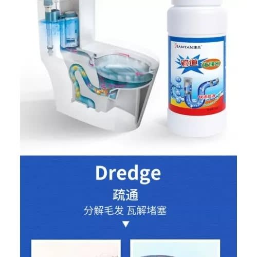 Powerful Pipeline Sink & Drain Dredger Cleaner Agent can quickly and effectively decompose the sewer grease, hair, vegetable leaf leftovers, kitchen garbage and other blockages, so as to achieve rapid dredging, powerful sterilization and removal of odors. It can effectively prevent pipeline blockage and pipeline maintenance, and is non-corrosive to cast iron, rubber, and plastic pipelines. It is an economical, convenient and quick cleaning product. It gets the job done by dissolving grease, hair, paper, soap scum, oils and organic matter easily that blocks common kitchen, toilet pipes.