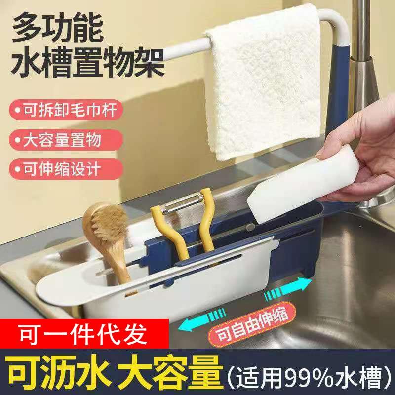 Buy Kitchen sink drain rack retractable supplies storage artifact space-saving multi-functional water filter rack drain basket blue in Nigeria