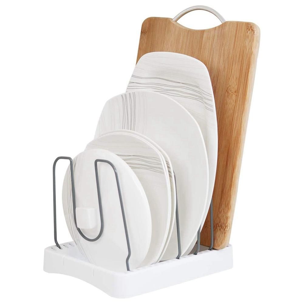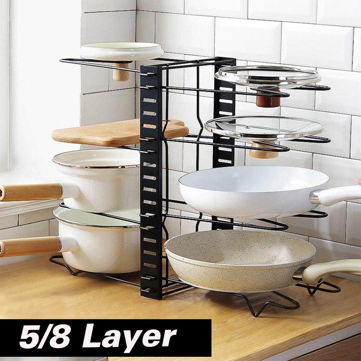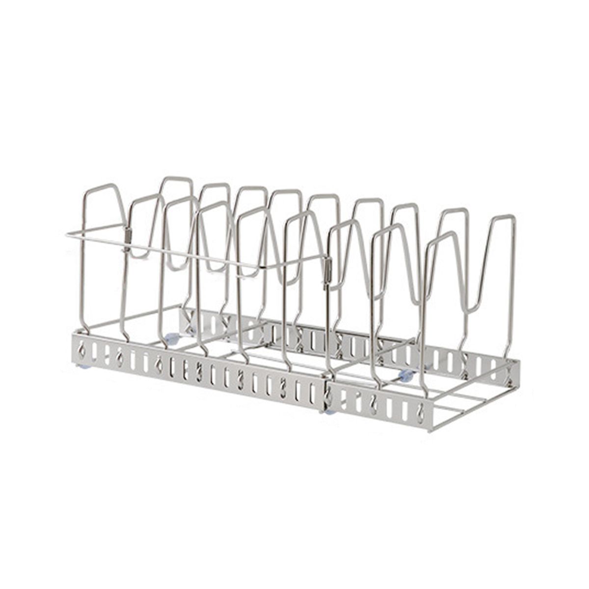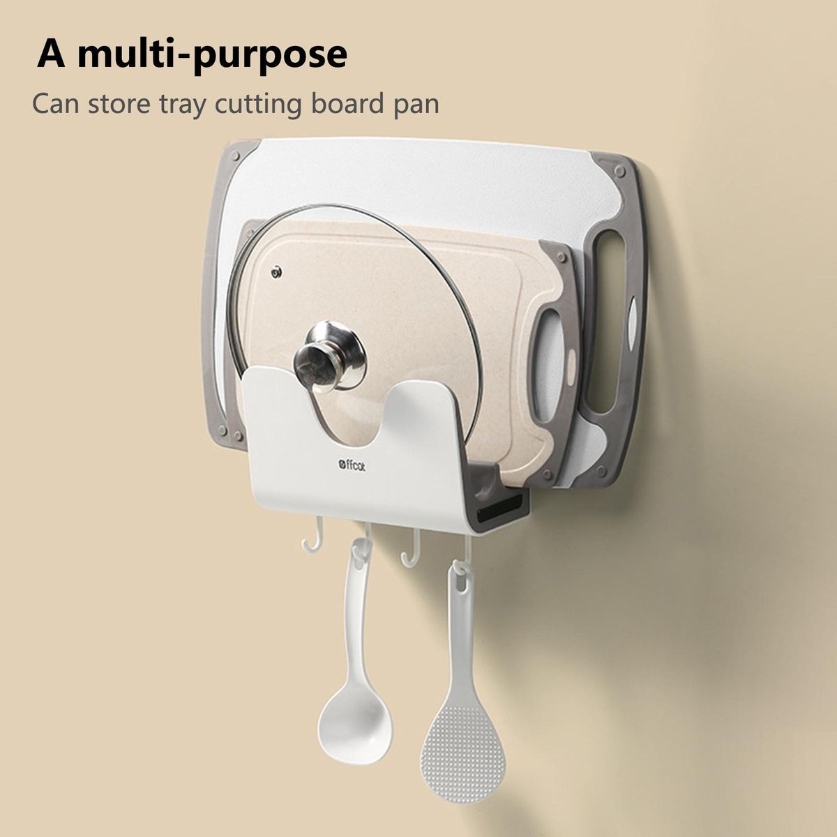 With a wall-mounted nail-free and-free design, this pot lid rack is easy to install and great for helping to get rid of countertop clutter and give the kitchen more space.