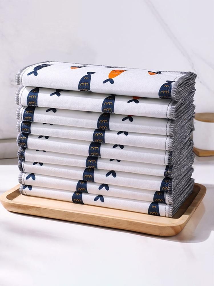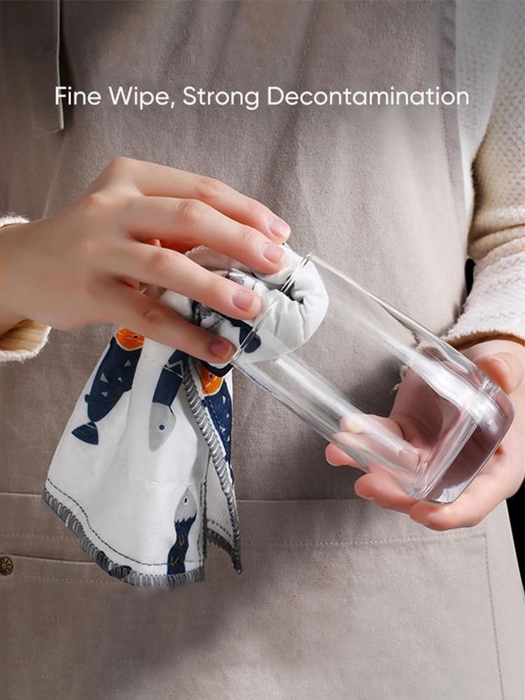 Kitchen Daily Dish Towel,8 Layers Pure Cotton Dishcloth Thicken Absorbent Kitchen Cleaning Cloth Scouring Pad