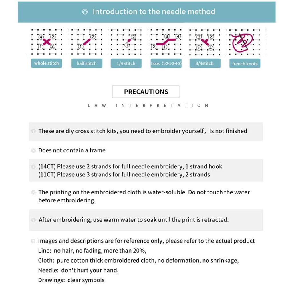 [ Cotton Fabric]ecological cotton threads which is brilliant in color and long time lasting. Grid lines on cloth, which can be washed , do not touch the water it is finished otherwise the printed part will [perfect Decor & Gifts] The is a enjoyable needlepoint kits. You can a sense of achievement when you finish the pattern. It can be used as a home decor , and great gifts for family,,and workmates as .