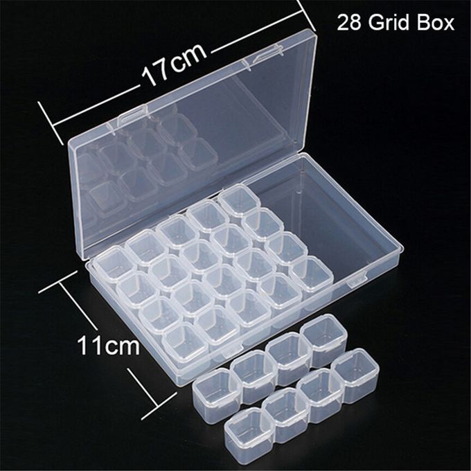 High Quality. Storage Box is made of transparent PP material, environment friendly, durable and sturdy, practical and broken-resistant. 28 separate grids. 28 separate grids, Each grid have a separate cover, have a good sealing. Every 4 grids for a group, hold tablets or lozenges for each day of the week. Humanization design. Multi-purpose, suitable for classifying and storing small parts such as beads, hardware parts, jewelry, rivet, nail, drugs, etc. drill,jewelry Drill convenient to storage. Maintain the integrity of the drug Strong corrosion resistance, no acid and alkali reaction. Good Sealing and Keep Neat It comes with cover that have a good sealing and keep neat, no loss. Compact Design Detachable storage grids, easy to carry. It features lightweight and compact design, easy to carry. Help you manage your work and daily life. Specifications: Stone Storage Convenience Box Type: Storage Organizer Material: Plastic Quantity: 1pc Item Color: Transparent Grid Quantity: 28pcs Grid Size: 2.4*2cm / 0.9*0.8"(L*W) Storage Box Size: 17.4*10.6*2.6cm / 6.8*4.2*1" (L*W*H) Shipping and Packaging All items will be double checked and well packed before sending.Items will be dispatched within 2 business days after buyers pay for the order. It usually takes about 14 to 18 working days for delivering the package to the destination(for remote areas,it may take a little longer). Special Announcement:Please fill in the correct and detailed consignee, address and phone number in the order. For fast and correct delivery.If you do not receive order within 30 working days,please feel free to contact Customer Service before leaving Negative and Neutral Feedback, we will do our best to help you resolve the problem.TaxNo, you will only pay what is quoted as total cost at checkout, no more. You are not expected to pay any additional duties or taxes. If you are asked by Customs or our logistic partner to pay duties, please contact our Customer Service .ReturnIf the product is not on good condition, You can return this product within 14 working days, please contact customer service center before returning.FeedbackYour satisfaction is our first priorityIf you receive the order and it is in good condition,we would be grateful if you would leave us 5 star Positive Feedback for the transaction.
