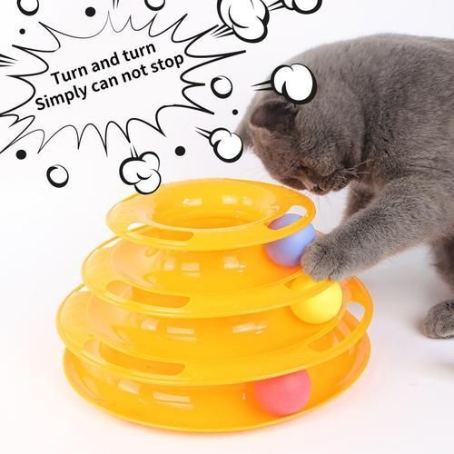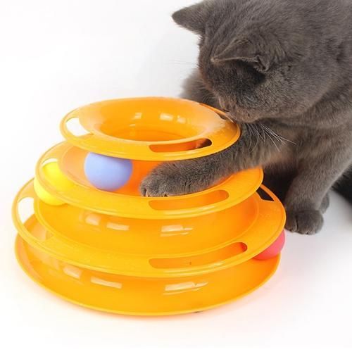 Kitten Three Levels Pet Cat Toy Tower Tracks Disc Kitty Intelligence Amusement Triple Disc Cat Toy Ball Training Amusement Plate-Cat Toys(green)