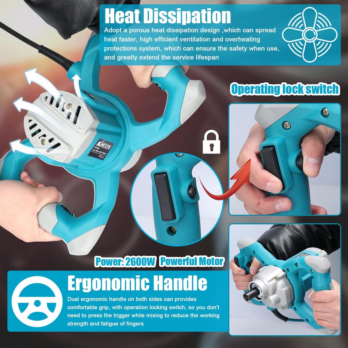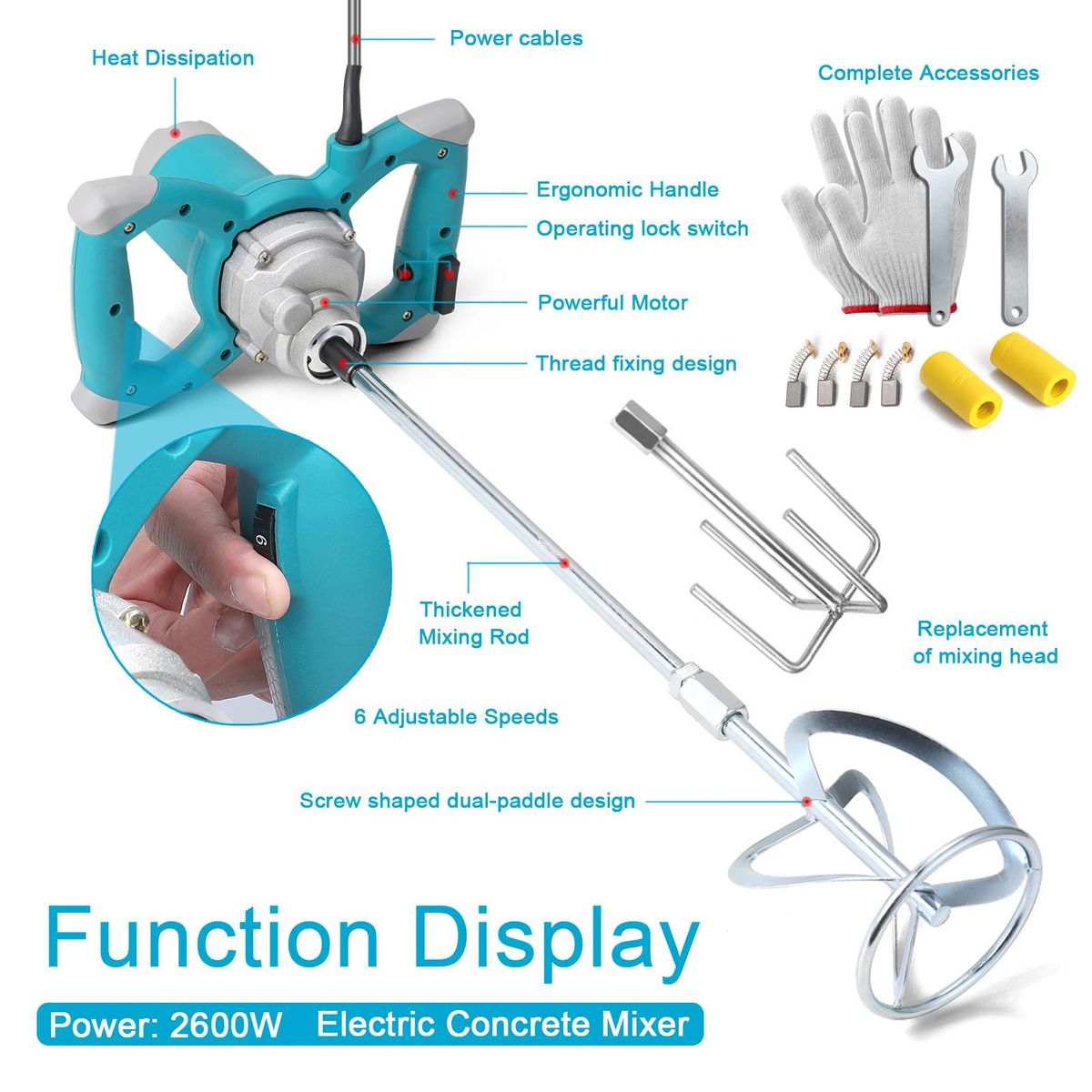 Buy KKmoon 2600W Electric Concrete Mixer Portable Handheld Concrete Cement Mixer 6 Speeds Adjustable Mixing Machine Thinset Mortar Grout Plaster Paint Stirring Tool in Nigeria