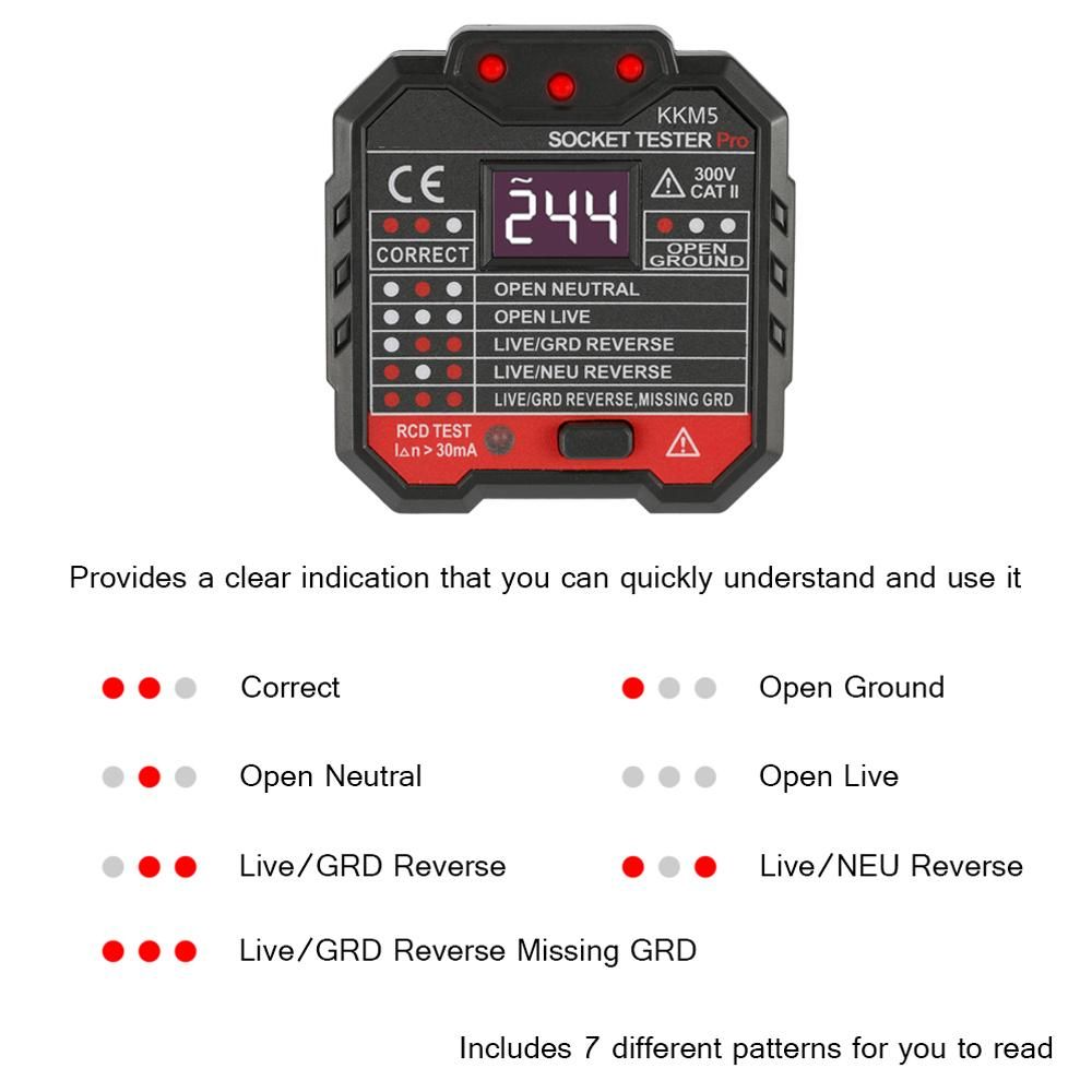 Buy KKmoon KKM5 Digital Display Socket Detector Portable Circuit Polarity Voltage Tester Wall Plug Breaker Finder RCD Test in Nigeria