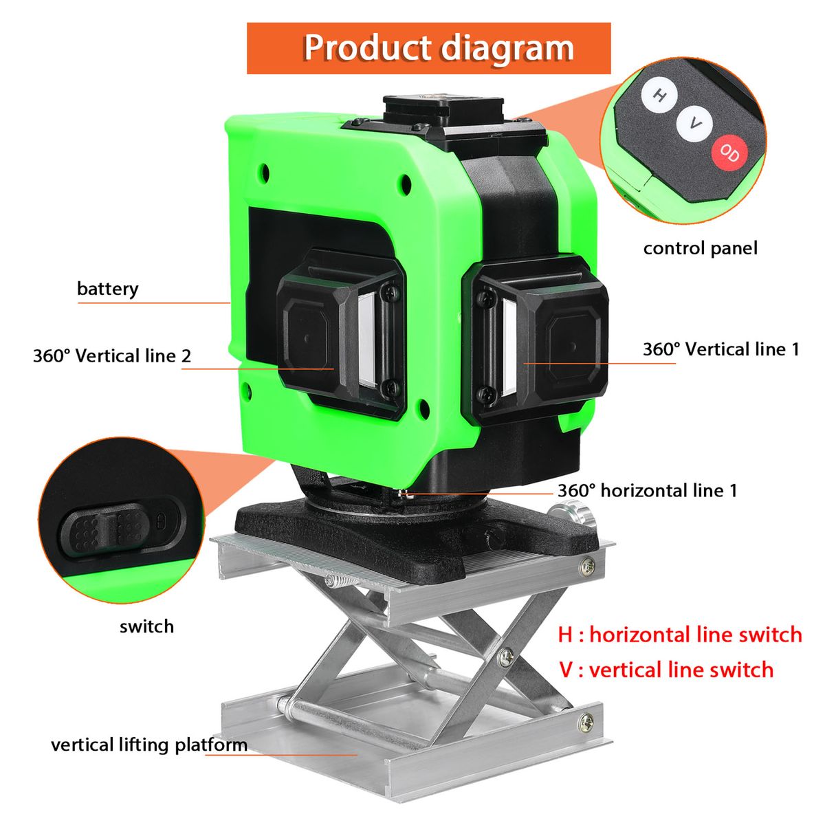 Output 12 laser lines separately or simultaneously for finer positioning, with 3 deg; self-leveling system, flexibility and stability.