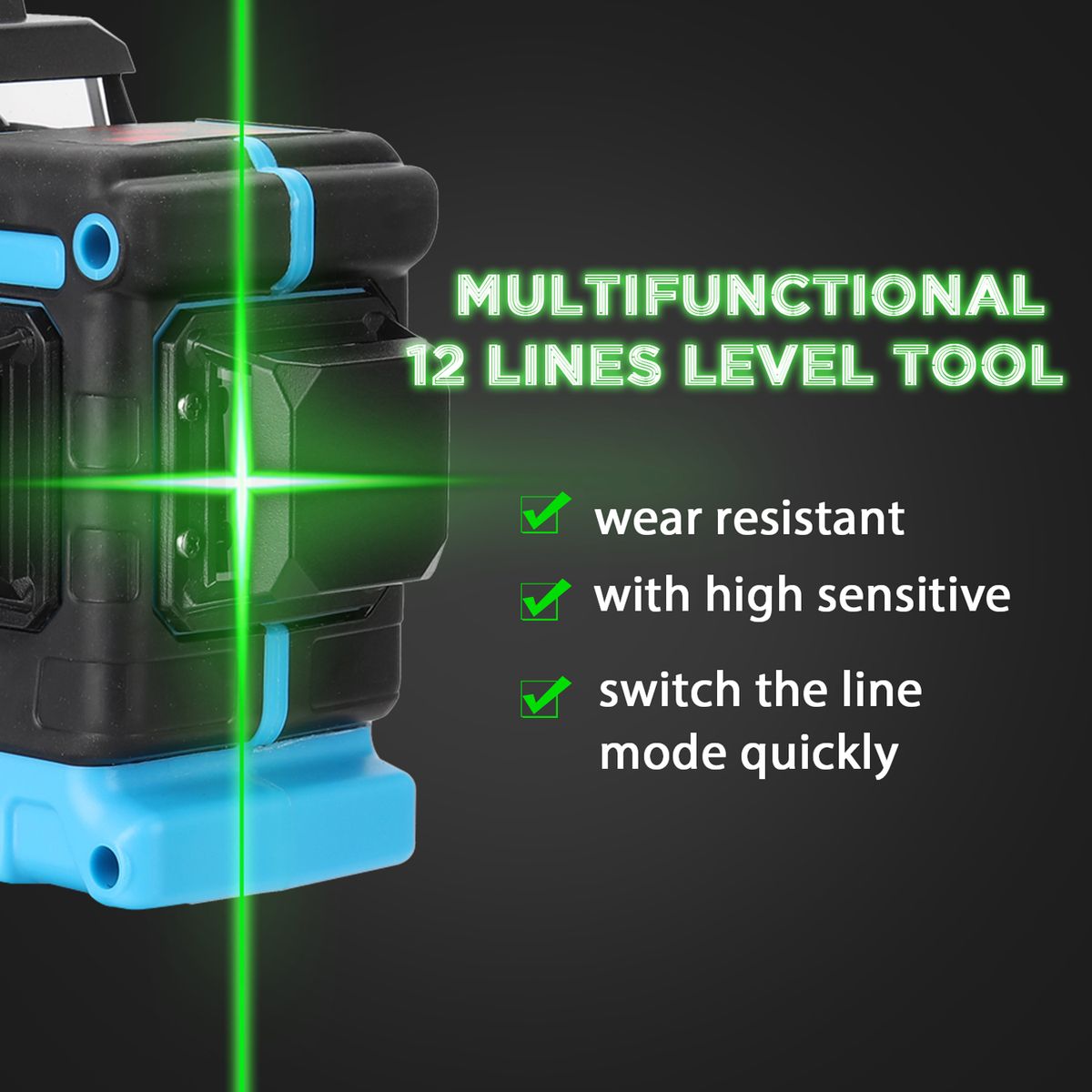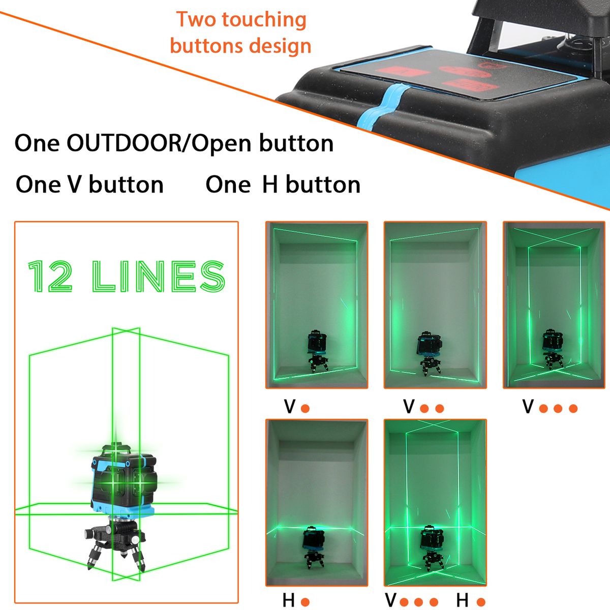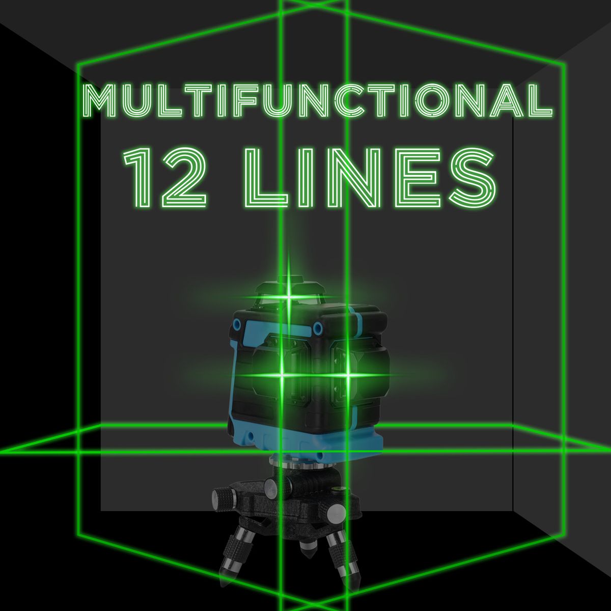 3D 12 lines for finer positioning, with self-leveling system, flexibility and stability.