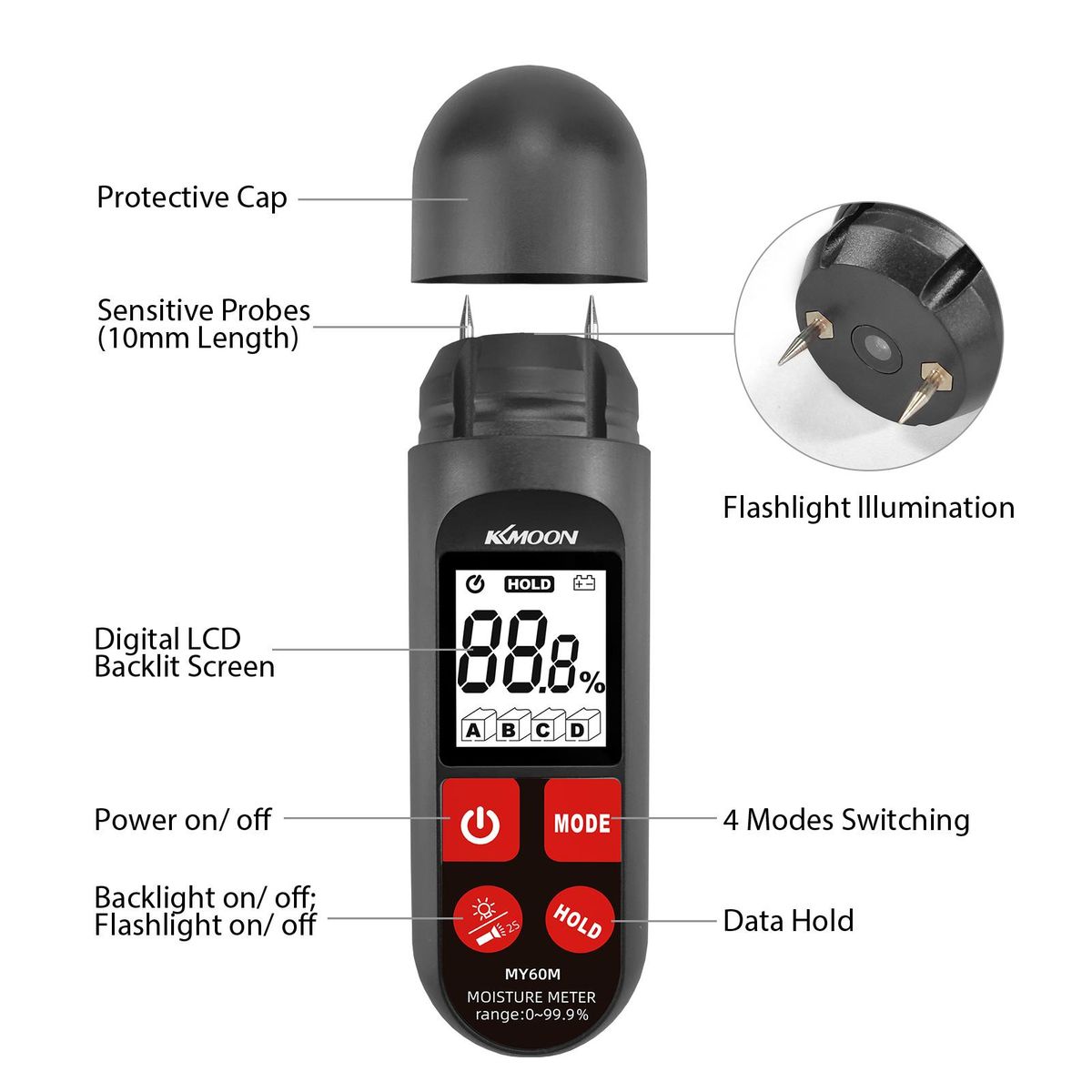 Buy KKmoon MY60M Digital Wood Moisture Meter Pin Type LCD Backlit 4 Modes Portable Wood Moisture Tester with Flashlight for 100 Wood Species Firewood Building Material in Nigeria