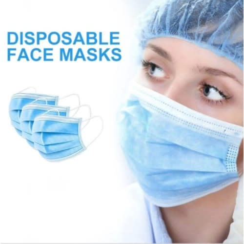 Disposable face cover, made of fine quality non-woven fabric, 3-layer, comfortable to wear, provides you effective protection.Features:Disposable, easy to use, and make relevant purification treat-ment.Made of non-woven, moisture-proof, non-toxic, non-irritating.3 layers design, provides protections against dust, automobile exhaust, pollen, etc.Can be used for food, pharmaceutical, electronics, textiles industries.Light weight, soft and comfortable to wear and effortless breathable.Adjustable nose clips, suitable for different face shapes and sizes.Specifications:Material: non-woven fabricQuantity: 10pcs, 20pcs, 50pcs(optional)Color: blueItem size: 175 * 95mmPackage size: 180 * 100 * 40mmPackage weight: 20g