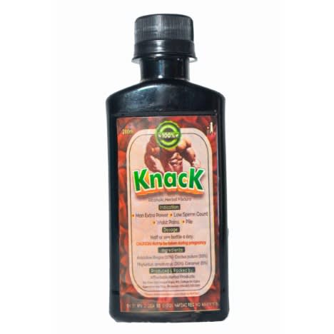 Knack alcoholic herbal mixtur,is adrink made for both male and female adult. it helps in Man extra power, low sperm counts, waist pain. pile