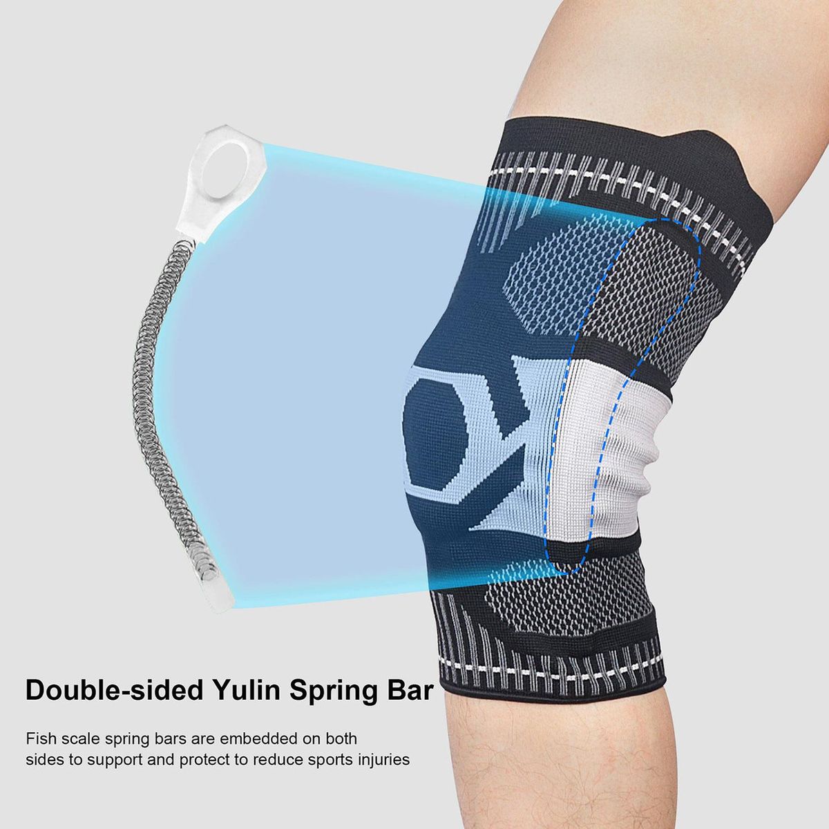 Articulated knee support technology: silicone pad around the knee, double-sided metal spring bracket close to the knee joint. These special features enhance side support and maintain joint stability. It effectively dissipates pressure, keeps the knee warm and lubricates the joints. The best choice for exercise and pain recovery.