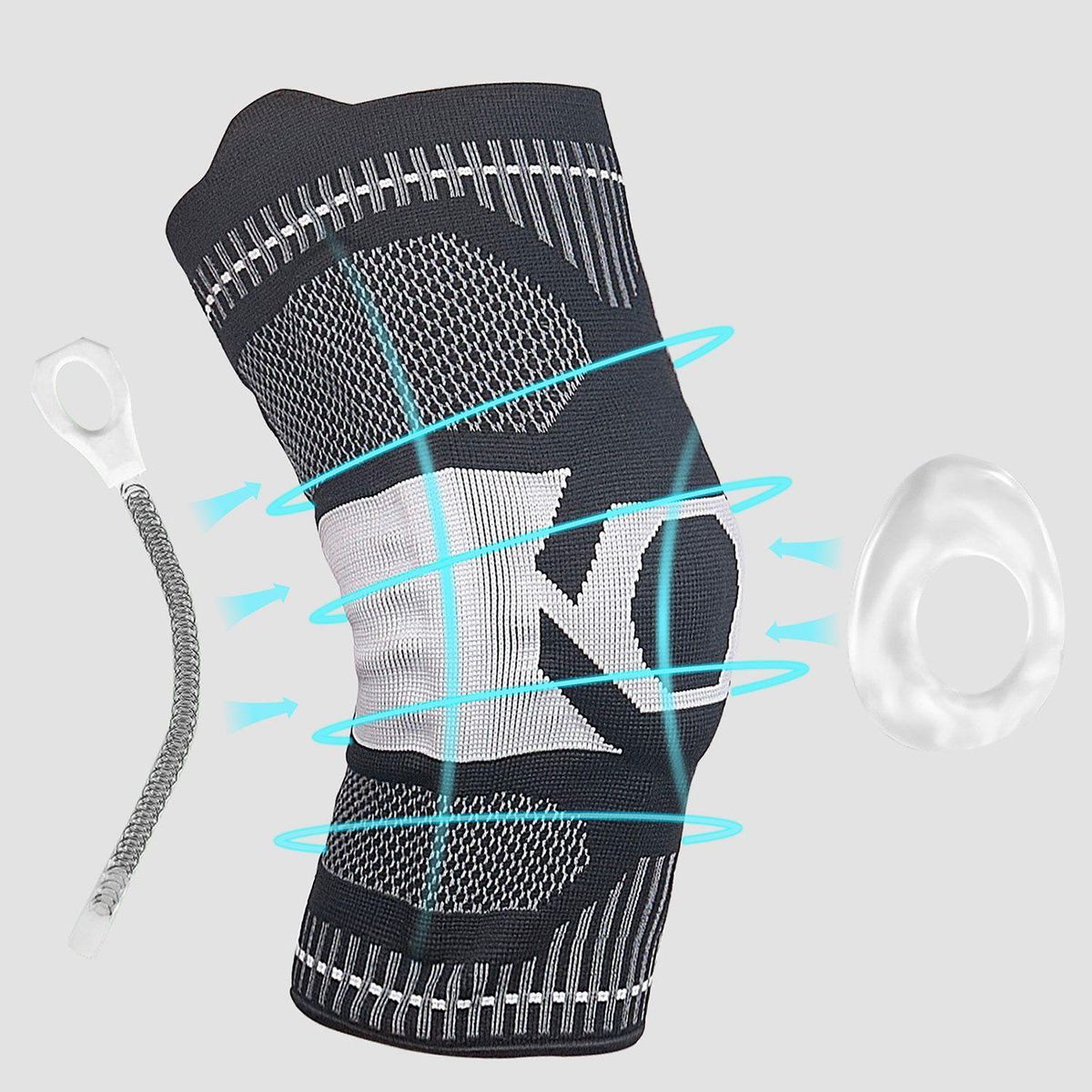 Woven three-dimensional structure, high-precision 3D knitting technology. Ergonomic design: 360° perfectly fits your knee flexion and uses a high-elastic, tight-breathable compression fabric to reduce knee pressure and pain