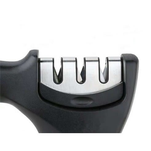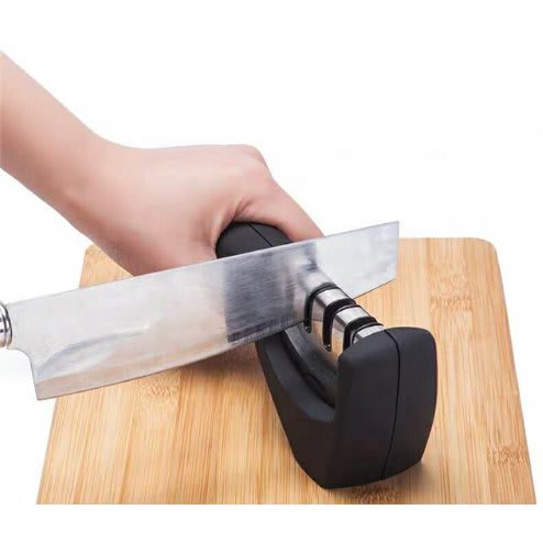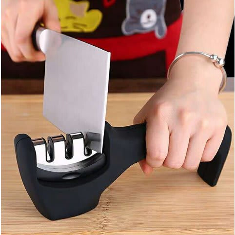 Keep cooking fun, safe and healthy with the Knife Sharpener ! Our 3-step system begins with a diamond sharpening rod slot that gently repairs and straightens damaged blades.You can even use it for ceramic knives! Next, tungsten steel provides coarse sharpening thatrestores the blade to a V-shape before the 3rd slot creates a stunning polish.