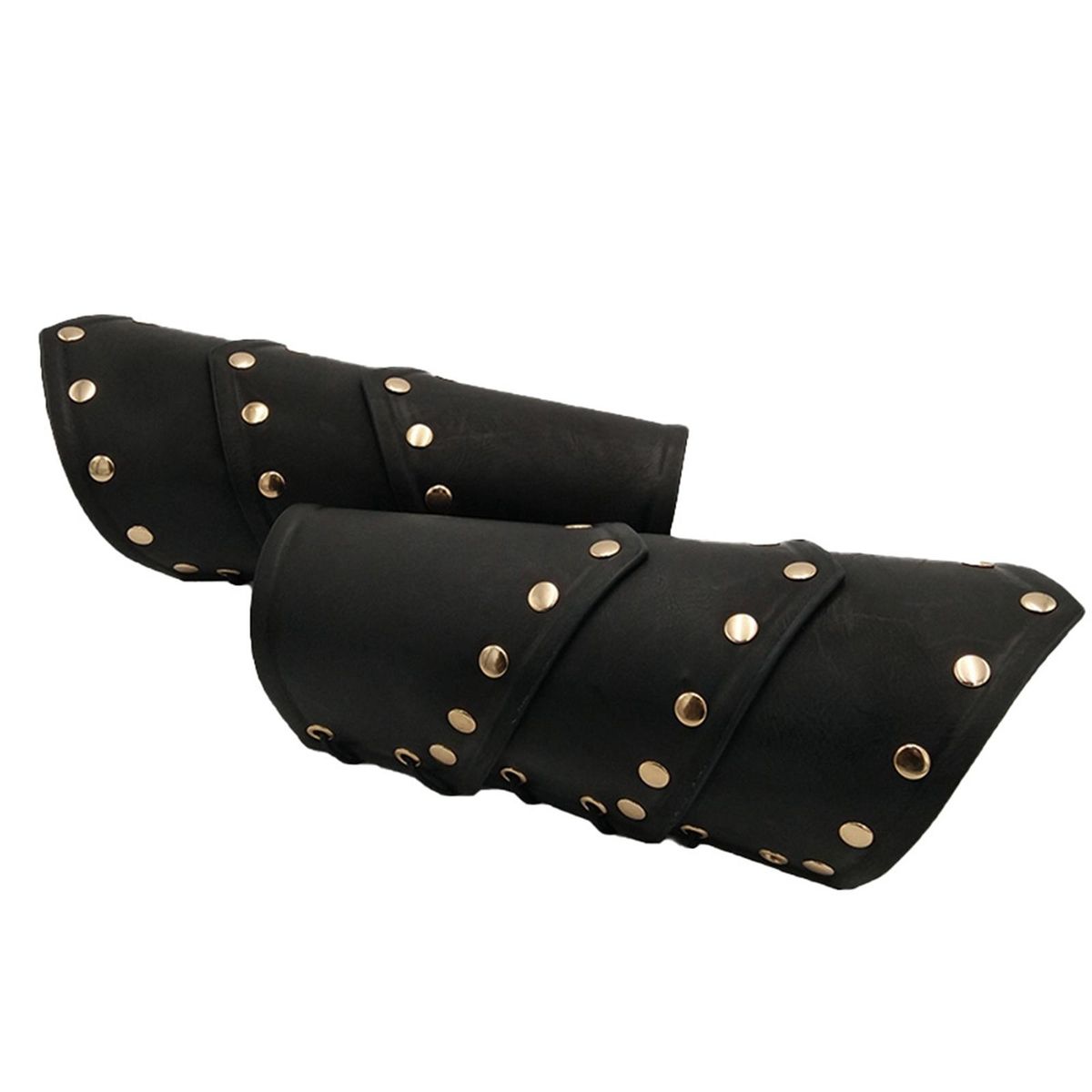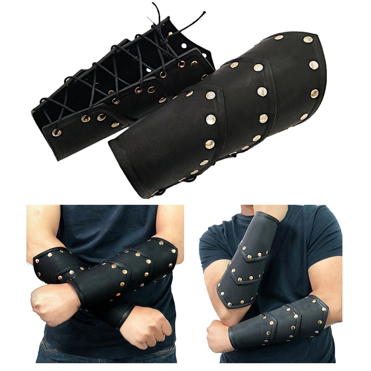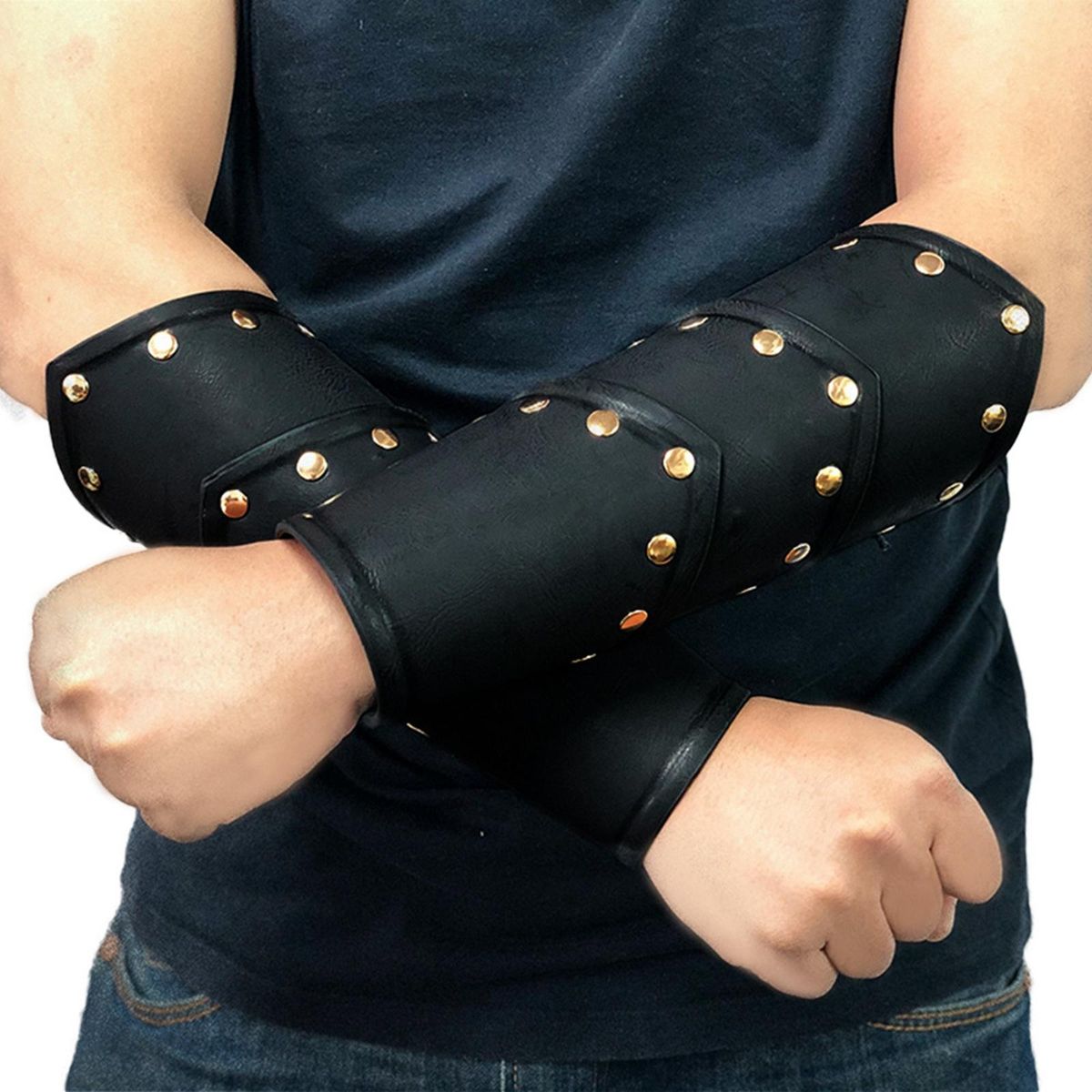 Triple Rivet Arm Bracers:Each armor bracers were crafted to be sturdy, rugged, and durable so that it will be able to join and assist you in many adventures to come.PU Leather: Please don't touch the water when the bracelet wearing. Please take off the PU Leather bracelet during the the Bathing or in the kitchen.Perfect Gift: Great gift choice for special occasions such as a Birthday, Graduation, Anniversary, Wedding, Christmas, Easter.Occasion: This knight armor bracelet can be used as a must have item for fashion and trendy men for costume, parties, guitars, fashion events, display,punk costume accessories and other occasions Adjustable:These bracers come in pairs . Side laces helps the leather armband fits for most women or men's sizes.