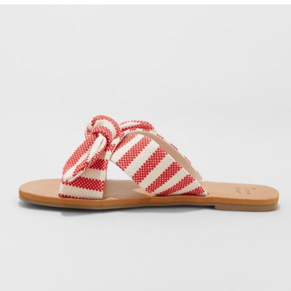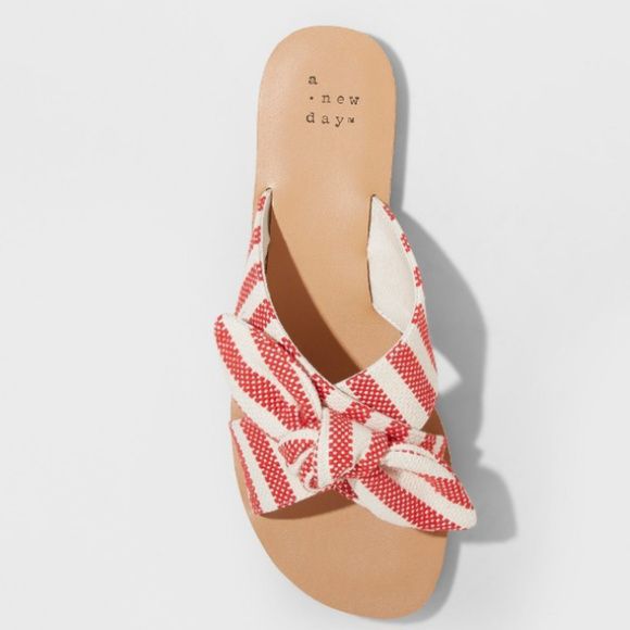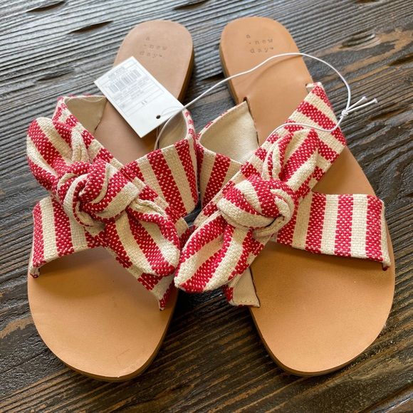 Add chic and comfy style to your warm-weather footwear with these Livia Knotted Bow Slide Sandals from A New Day. These stylish slide sandals make an on-trend pick for the warmer months. They feature a woven crisscross strap design with a knotted bow detail on top to bring the perfect chic finishing touch to a range of ensembles. You can style them with anything from jeans and a tee to a maxi dress when you're enjoying sunny days.