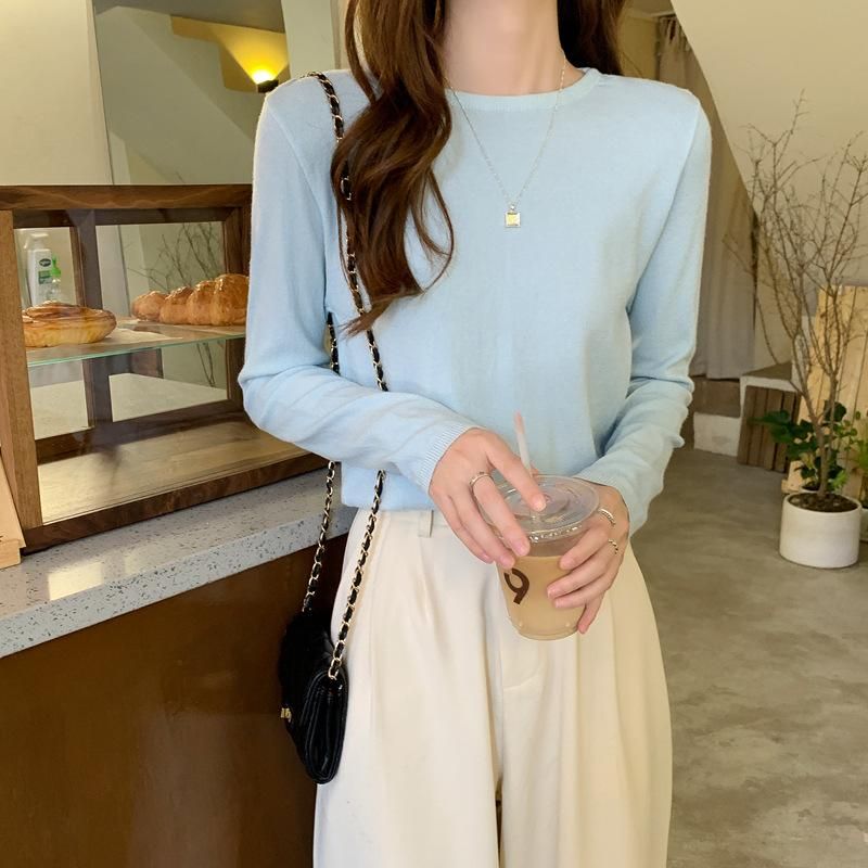 Buy Knitted sweater autumn/winter Korean version with inner round neck sweater long sleeved knit bottom in Nigeria