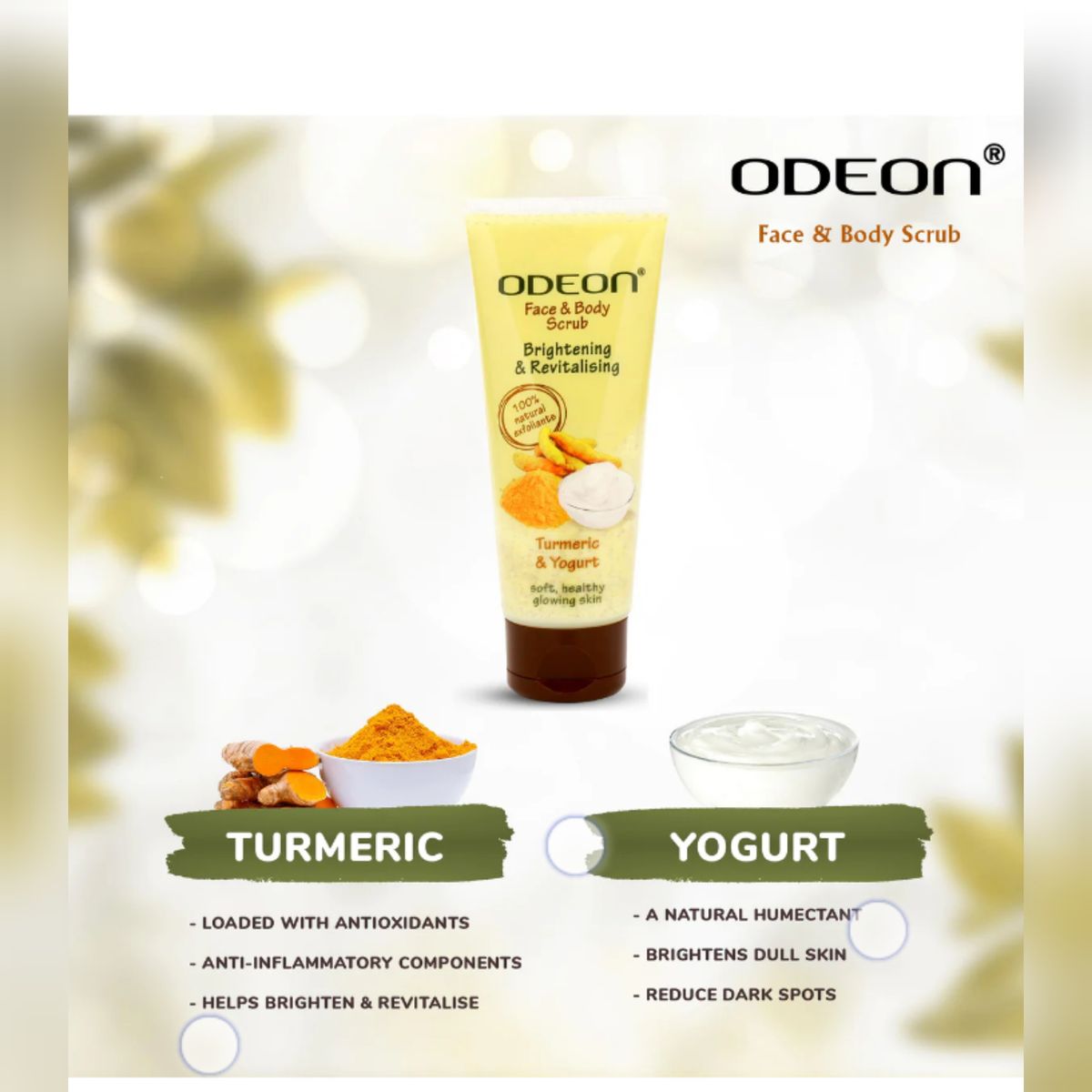 Kojie San soap is not just an excellent for skin lightening but also plays a major role in revitalizing, improving, maintaining skin color at its best giving it a youthful beauty look. It also fights against pimples, dark spots and marks on the skin. Nevertheless, it has anti aging properties and prevents oxidative stress and antioxidant that fights skin cancer. The original kojic acid lightening soap, Kojie san's formulation blends effective whitening ingredients with nourishing coconut oil and a fresh orange fragrance. Kojic acid was discovered while processing rice for Japanese wines. The naturally derived ingredients in this soap have been proven to safely and quickly reveal even skin by gently smoothing away dark spots, discoloration and other imperfections. How to use lather soap and apply to treatment areas. Leave the soap on for up to 30 seconds. Apply once per day and increase to twice a day if well tolerated. If dryness occurs follow with a moisturizing cream. Safety: before use, perform a spot test to test for sensitivity as follows: lather the soap up and apply to the intended area of use for up to 60 seconds. Odeon Turmeric and yogurt scrub is made with the finest quality of turmeric and Yogurt. Loaded with antioxidants and anti inflammatory component. It helps brighten and revitalize the skin. The yogurt in it is a natural humectant, brightens dull skin and reduces and lighten dark spots and acne scars. It also reduces blemish and premature aging, removes dead skin and tightens pores.Kojie San soap is not just an excellent for skin lightening but also plays a major role in revitalizing, improving, maintaining skin color at its best giving it a youthful beauty look. It also fights against pimples, dark spots and marks on the skin. Nevertheless, it has anti aging properties and prevents oxidative stress and antioxidant that fights skin cancer. The original kojic acid lightening soap, Kojie san's formulation blends effective whitening ingredients with nourishing coconut oil and a fresh orange fragrance. Kojic acid was discovered while processing rice for Japanese wines. The naturally derived ingredients in this soap have been proven to safely and quickly reveal even skin by gently smoothing away dark spots, discoloration and other imperfections. How to use lather soap and apply to treatment areas. Leave the soap on for up to 30 seconds. Apply once per day and increase to twice a day if well tolerated. If dryness occurs follow with a moisturizing cream. Safety: before use, perform a spot test to test for sensitivity as follows: lather the soap up and apply to the intended area of use for up to 60 seconds. Odeon Turmeric and yogurt scrub is made with the finest quality of turmeric and Yogurt. Loaded with antioxidants and anti inflammatory component. It helps brighten and revitalize the skin. The yogurt in it is a natural humectant, brightens dull skin and reduces and lighten dark spots and acne scars. It also reduces blemish and premature aging, removes dead skin and tightens pores.Kojie San soap is not just an excellent for skin lightening but also plays a major role in revitalizing, improving, maintaining skin color at its best giving it a youthful beauty look. It also fights against pimples, dark spots and marks on the skin. Nevertheless, it has anti aging properties and prevents oxidative stress and antioxidant that fights skin cancer. The original kojic acid lightening soap, Kojie san's formulation blends effective whitening ingredients with nourishing coconut oil and a fresh orange fragrance. Kojic acid was discovered while processing rice for Japanese wines. The naturally derived ingredients in this soap have been proven to safely and quickly reveal even skin by gently smoothing away dark spots, discoloration and other imperfections. How to use lather soap and apply to treatment areas. Leave the soap on for up to 30 seconds. Apply once per day and increase to twice a day if well tolerated. If dryness occurs follow with a moisturizing cream. Safety: before use, perform a spot test to test for sensitivity as follows: lather the soap up and apply to the intended area of use for up to 60 seconds. Odeon Turmeric and yogurt scrub is made with the finest quality of turmeric and Yogurt. Loaded with antioxidants and anti inflammatory component. It helps brighten and revitalize the skin. The yogurt in it is a natural humectant, brightens dull skin and reduces and lighten dark spots and acne scars. It also reduces blemish and premature aging, removes dead skin and tightens pores.Kojie San soap is not just an excellent for skin lightening but also plays a major role in revitalizing, improving, maintaining skin color at its best giving it a youthful beauty look. It also fights against pimples, dark spots and marks on the skin. Nevertheless, it has anti aging properties and prevents oxidative stress and antioxidant that fights skin cancer. The original kojic acid lightening soap, Kojie san's formulation blends effective whitening ingredients with nourishing coconut oil and a fresh orange fragrance. Kojic acid was discovered while processing rice for Japanese wines. The naturally derived ingredients in this soap have been proven to safely and quickly reveal even skin by gently smoothing away dark spots, discoloration and other imperfections. How to use lather soap and apply to treatment areas. Leave the soap on for up to 30 seconds. Apply once per day and increase to twice a day if well tolerated. If dryness occurs follow with a moisturizing cream. Safety: before use, perform a spot test to test for sensitivity as follows: lather the soap up and apply to the intended area of use for up to 60 seconds. Odeon Turmeric and yogurt scrub is made with the finest quality of turmeric and Yogurt. Loaded with antioxidants and anti inflammatory component. It helps brighten and revitalize the skin. The yogurt in it is a natural humectant, brightens dull skin and reduces and lighten dark spots and ac