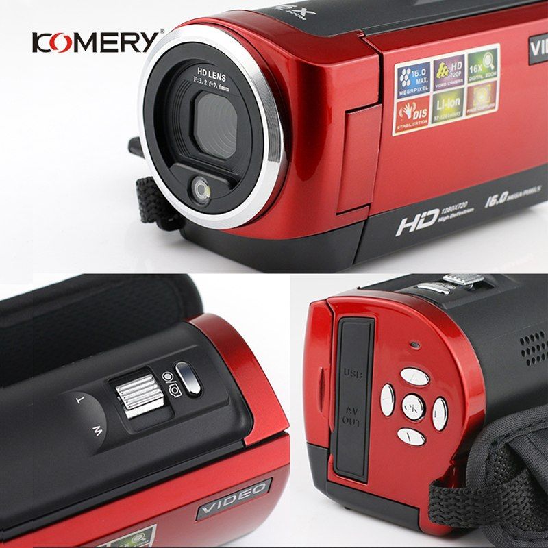 1X KOMERY HD Video Camera 2.7 Inch LCD screen 16x Zoom Digital Anti-shake Mini Camcorder camara fotografica digital professional