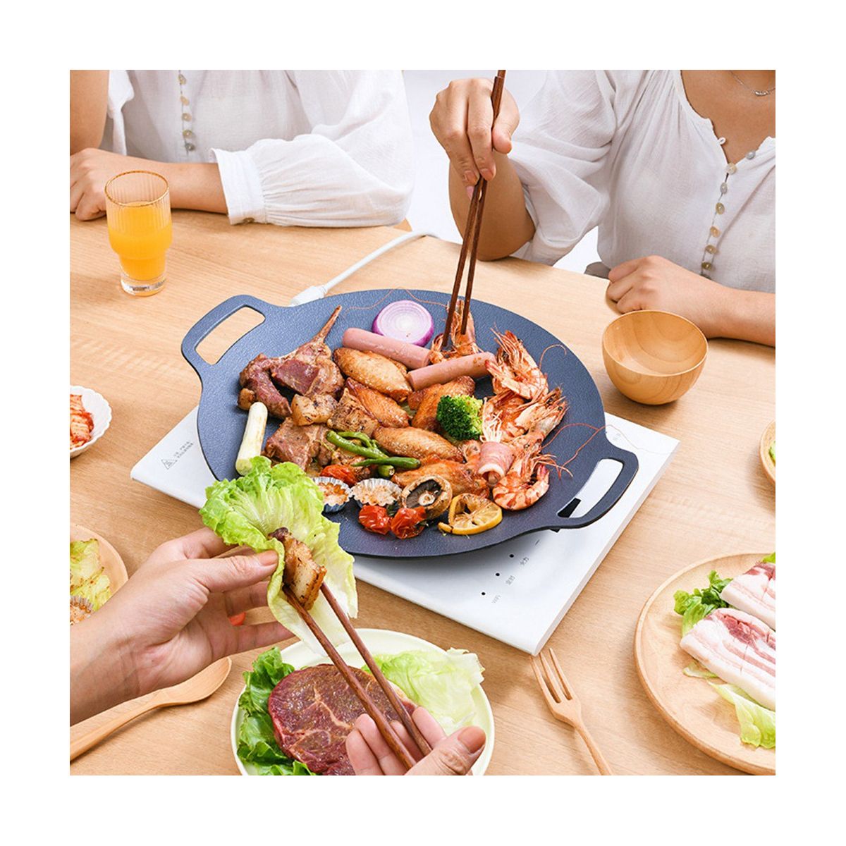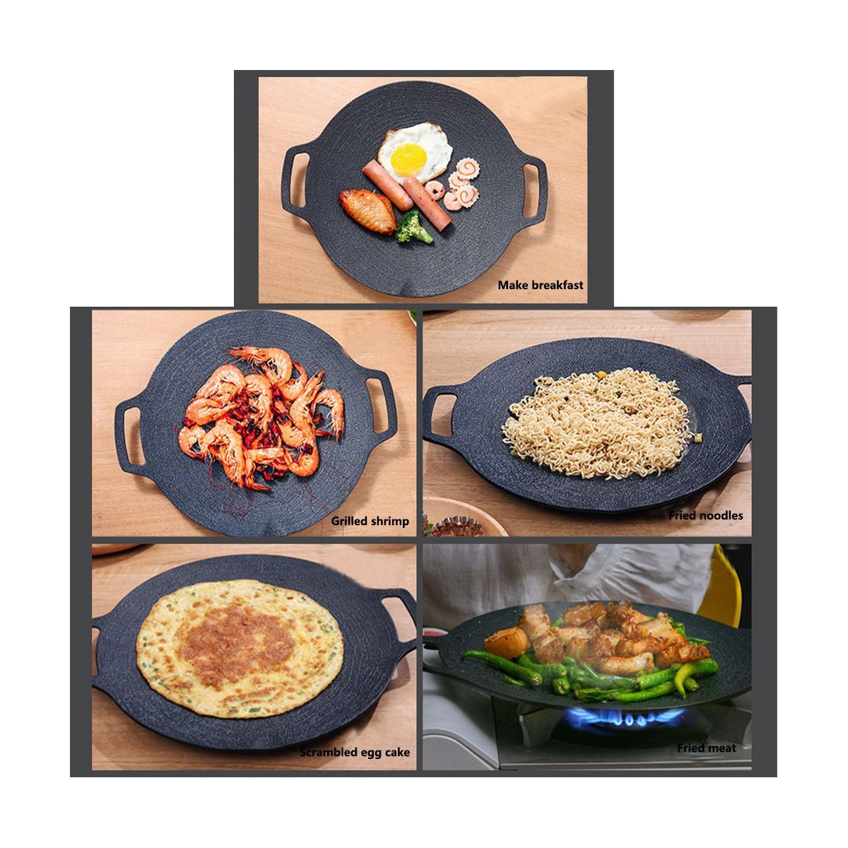 Easy Food Preparation The Korean skillet is suitable for many kinds of food You can prepare all kinds of grilled meats eg B Pork belly pancakes fried rice cakes ribs fried meat etc Can also be cooked with a small amount of broth