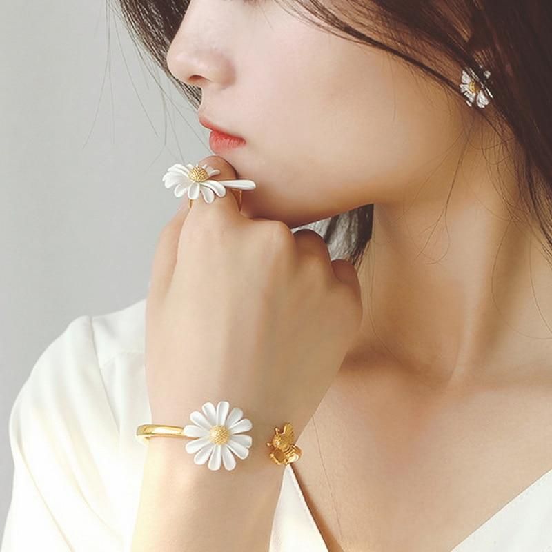 Buy Korean Style Cute Small Daisy Flower Stud Earrings For Women Girls Sweet Statement Asymmetrical Earring Party Jewelry Gifts in Nigeria