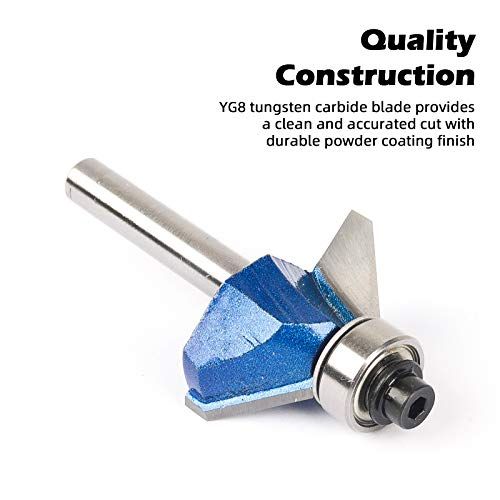 Details: Why KOWOOD?KOWOOD is a brand to supply for anyone whos like to DIY and speified for wood made lovers.Produt Desription:KOWOOD Plus 45 degree hamfer router bit set in C3 arbide tipped.This set is suitable for both professional arpenters and hobbyists.Features:KOWOOD Plus 45 degree hamfer router bit set. 2 flutes with totally enlosed high quality bearing guides. The top mounted bearing is Idal For Beveled Edge TreatmentKOWOOD C3 arbide tips and oating for a long life and easy slot utPreisely mahined arbide for lean and aurate slot utting for all types of wood materialWide use appliation and suitable for woods, laminate, partile board, plywood ompat panelUniversal 1/4 Shank is suitable for all major benhtop router tables suh as KOWOOD, Bosh, DeWalt, Makita, Milwaukee, Porter & Cable, Skil, Ryobi, Blak & DekerPakage Inluded:4 ps 45 degree hamfer router bits