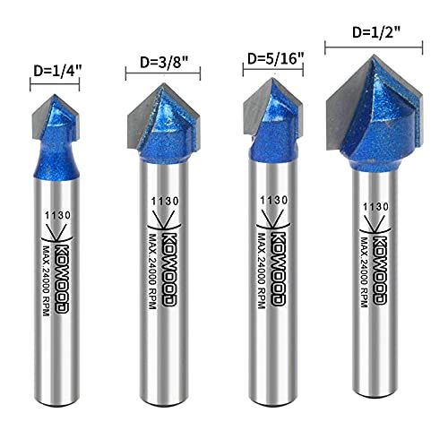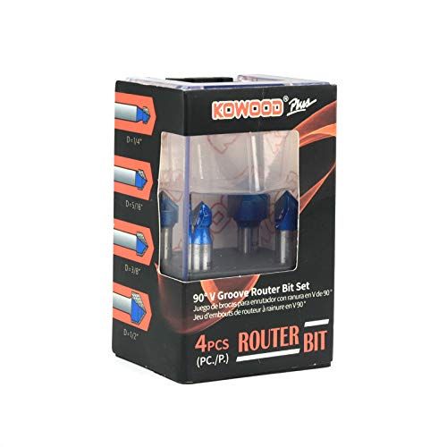Details: Why KOWOOD?KOWOOD is a brand to supply for anyone whos like to DIY and speified for wood made lovers.Produt Desription:KOWOOD Plus degree V Groove router bit set in C3 arbide tipped.This set is suitable for both professional arpenters and hobbyists.Features:KOWOOD Plus degree V Groove router bits are perfet for making signs and engraving work. Add deoretive detail to your woodwork and reate added visual interest.KOWOOD C3 arbide tips and oating for a long life and easy slot utPreisely mahined arbide for lean and aurate slot utting for all types of wood materialWide use appliation and suitable for woods, laminate, partile board, plywood ompat panelUniversal 1/4 Shank is suitable for all major benhtop router tables suh as KOWOOD, Bosh, DeWalt, Makita, Milwaukee, Porter & Cable, Skil, Ryobi, Blak & DekerPakage Inluded:4 ps degree V Groove router bits