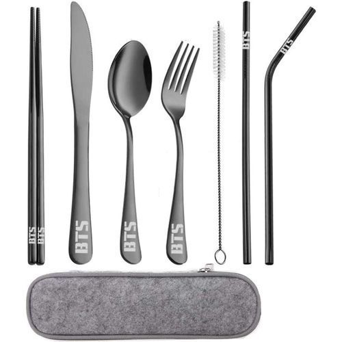 - 8 Piece Kpop BTS Bangtan Boys Travel Camping Cutlery Set.