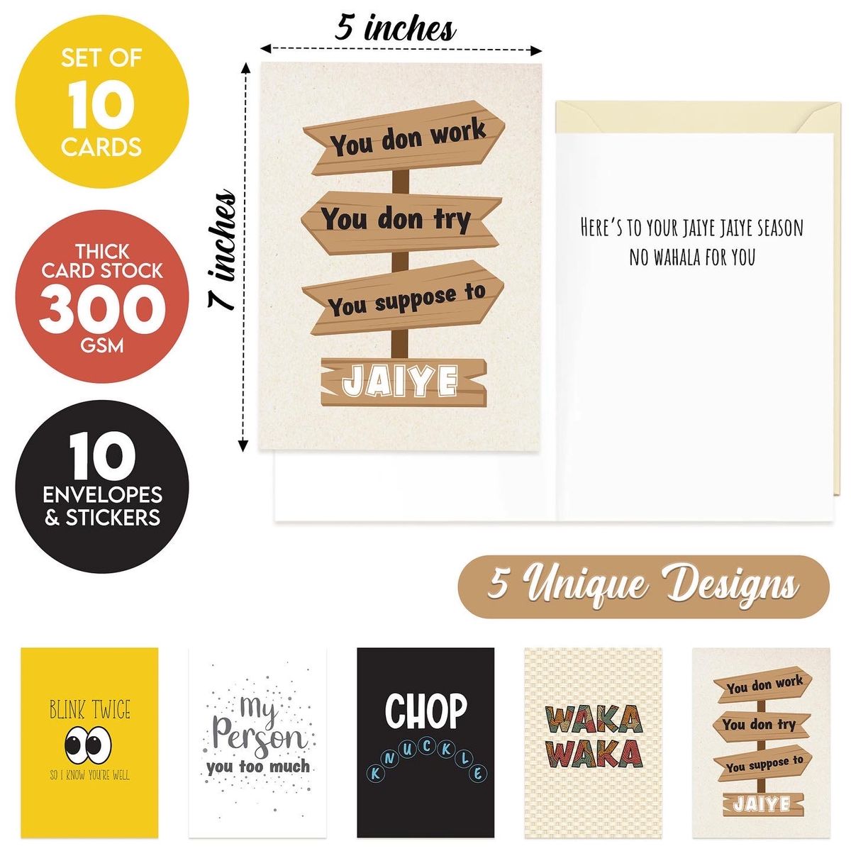 ✵10 FUN GREETING CARDS WITH 5 UNIQUE DESIGNS: 5x7 inch greeting cards with 5 unique and fun designs (2 of each design).