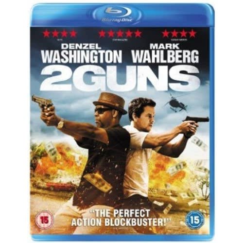 Whether you consider it a question or an answer, the ironic title of this fast, funny and brutally beautiful buddy thriller is both misleading and perfectly apt. There are way more than two guns in 2 Guns (don't even try to keep count), but the only two that matter are Denzel Washington and Mark Wahlberg as bromantic heroes who create enough chemistry to rival the firepower that makes most everything in 2 Guns go bang. A wildly convoluted plot is redeemed by masses of kinetic energy that come in bursts like controlled automatic weapons fire and by a stream of dialogue and patter that Washington and Wahlberg trade like battling electric guitar riffs. They play Bobby and Stig, the former an undercover DEA agent and the latter a Naval Intelligence officer, who are both on the trail of a bloodthirsty Mexican drug cartel kingpin named Papi (a coldly showy Edward James Olmos).