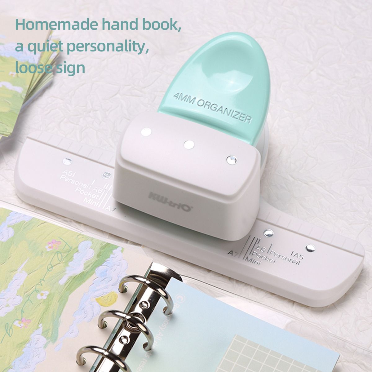 Features:Punch Capacity: This hole puncher is capable of printing 8 sheets of A4 paper, and ideal for punching and binding 3/6 holes in A8 (mini), A7, A7 Pocket, A6, A6 Personal, and A5 size loose-leaf pages.